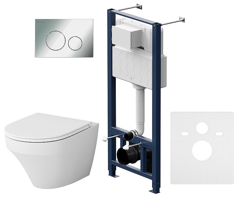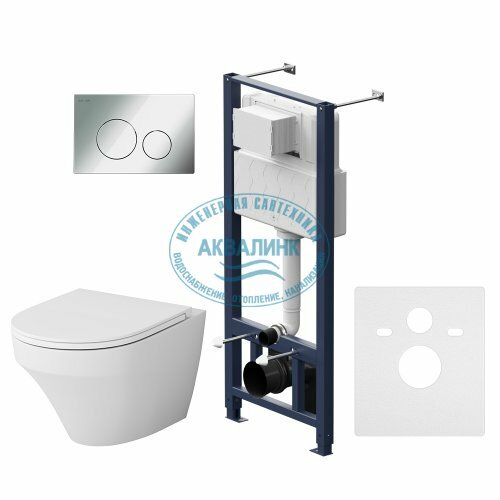 Полностью готовый к установке комплект: система инсталляции с клавишей подвесной унитаз сиденьем.