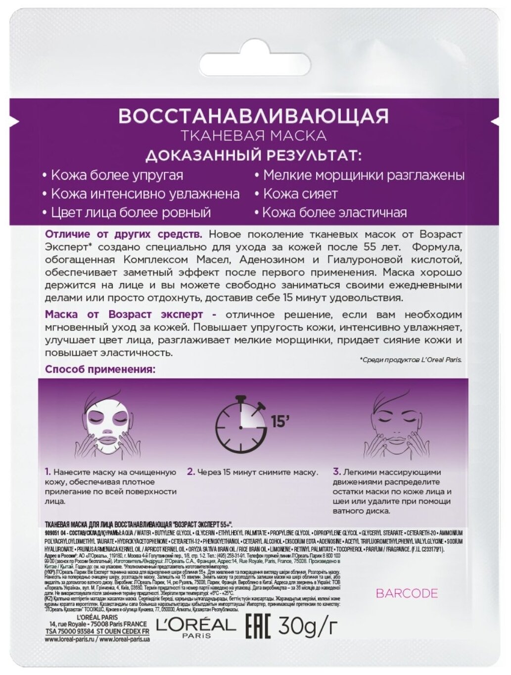 L’Oreal Тканевая маска для лица Возраст Эксперт 55+ (L’Oreal ) L'OREAL (A9888000)