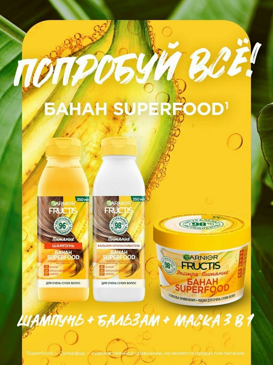 Garnier Бальзам-ополаскиватель для питания волос SuperFood Банан 350 мл (Garnier ) (C6347500)