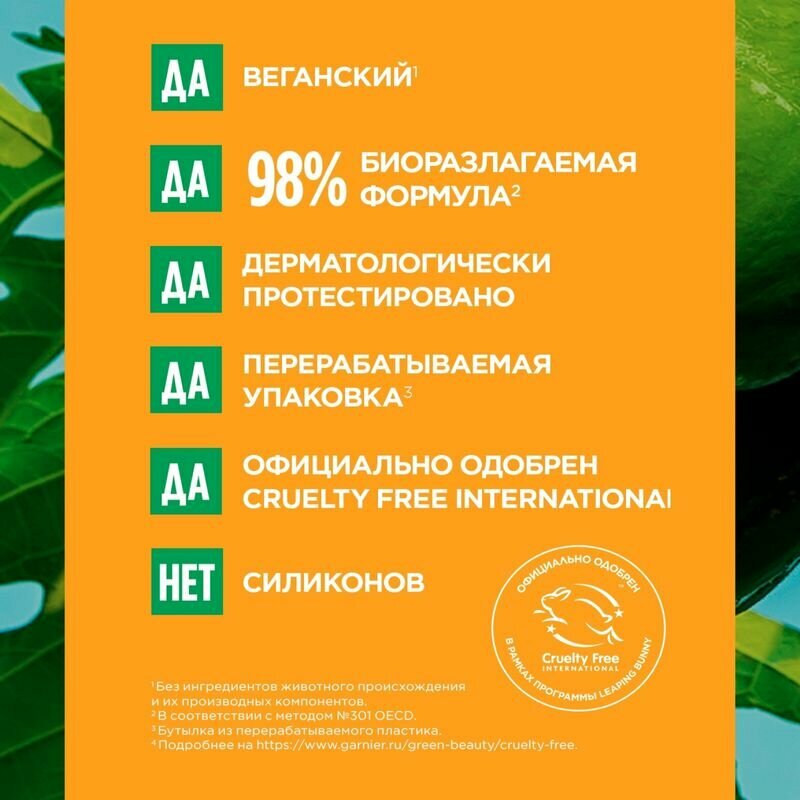 Экстракт папайи – придает блеск и шелковистость волосам, способствует их укреплению и восстановлению.