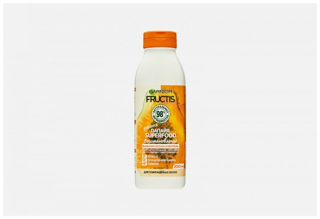 Бальзам-ополаскиватель с восстанавливающим действием. Тающая текстура, обогащенная папайей и растительными маслами, быстро проникает в волосы, интенсивно питает, укрепляет, облегчает расчесывание. Формула на 98% состоит из ингредиентов натурального происхождения, а остальные 2% нужны для поддержания приятной консистенции и стойкости формулы. Упаковка бальзама на 100% подлежит вторичной переработке. Средство не содержит парабенов, силиконов, искусственных красителей, веществ животного происхождения. После применения ваши волосы мягкие, выглядят здоровыми и блестящими.