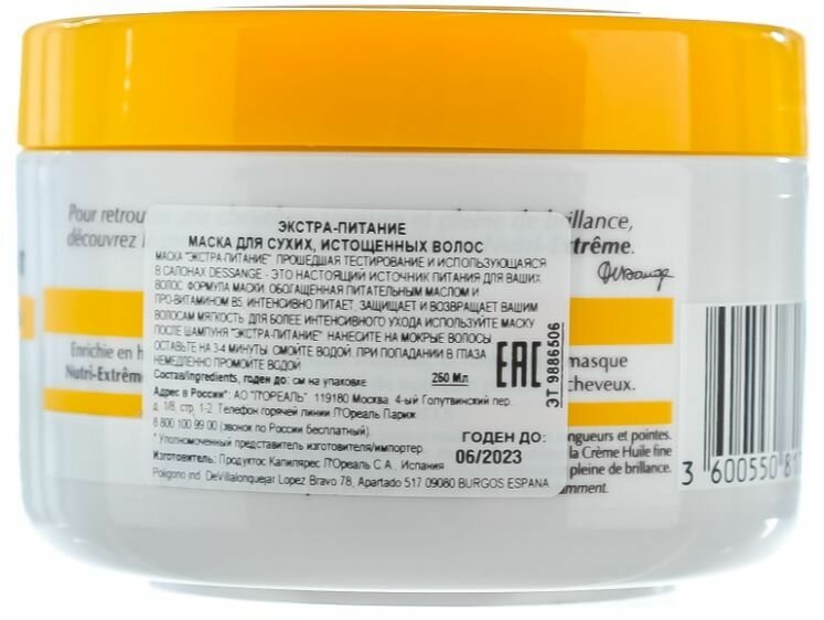 L’Oreal Маска Экстра питание для сильно истощенных волос 250 мл (L’Oreal ) L'OREAL (D0360222)