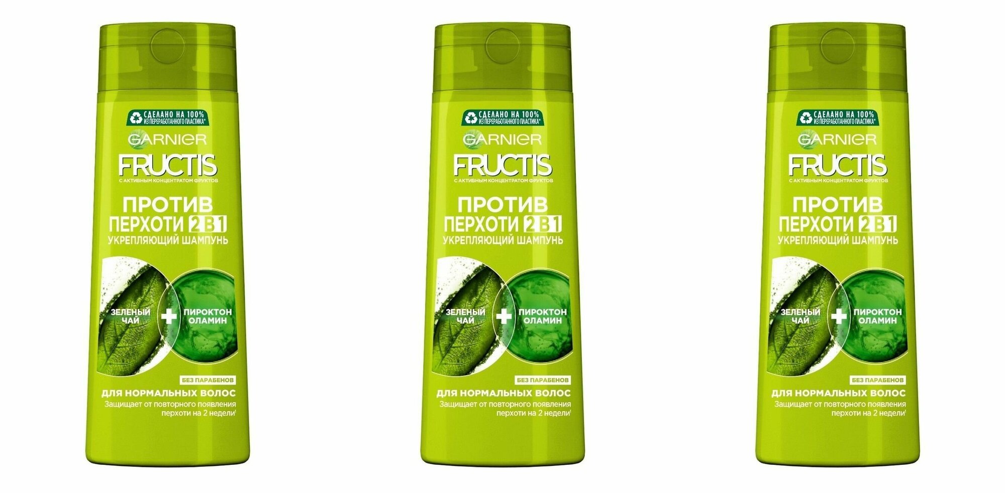 Шампунь 2 в 1 от перхоти для всех типов волос, совмещает в себе очищение кожи головы и кондиционирование волос. Формула с пиритионом цинка и экстрактом листьев зеленого чая заметно уменьшает количество перхоти с первого применения и препятствует ее повторному появлению. Благодаря активному концентрату фруктов волосы день за днем обретают силу и здоровый блеск.