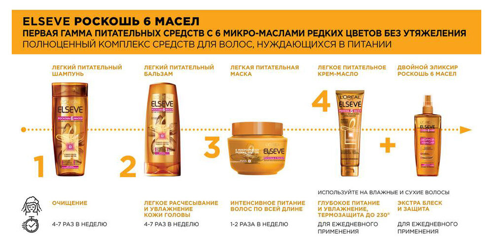 Шампунь для волос из серии Эльсев Роскошь 6 Масел дарит ослепительную красоту роскошных волос. Этот ценнейший концентрат из 6 цветочных микро-масел наполняет волосы и кожу головы питательными веществами, преображая их до самых кончиков: