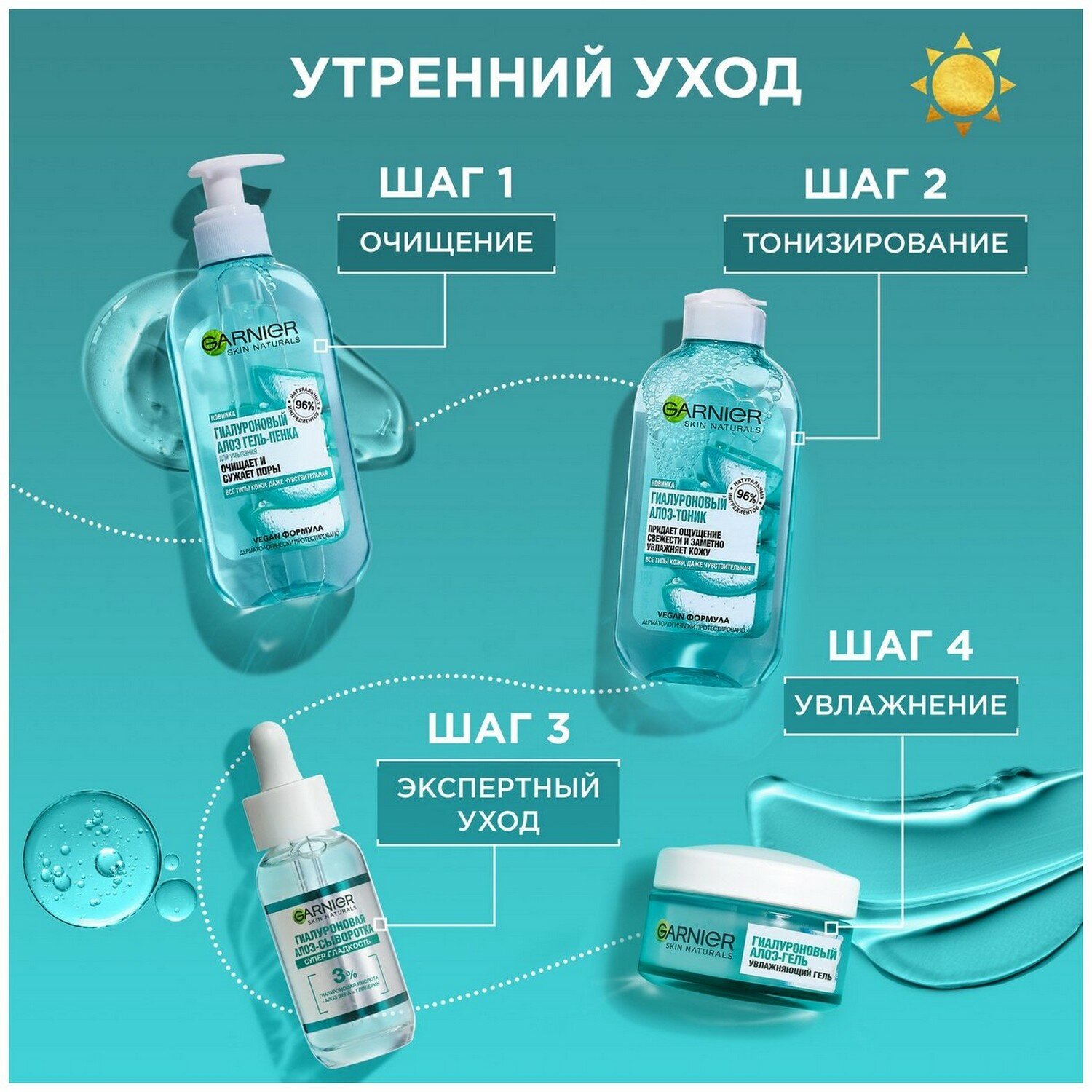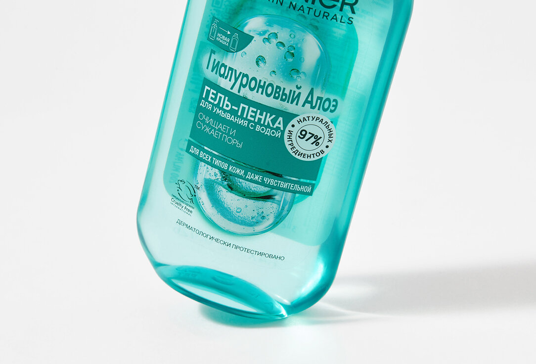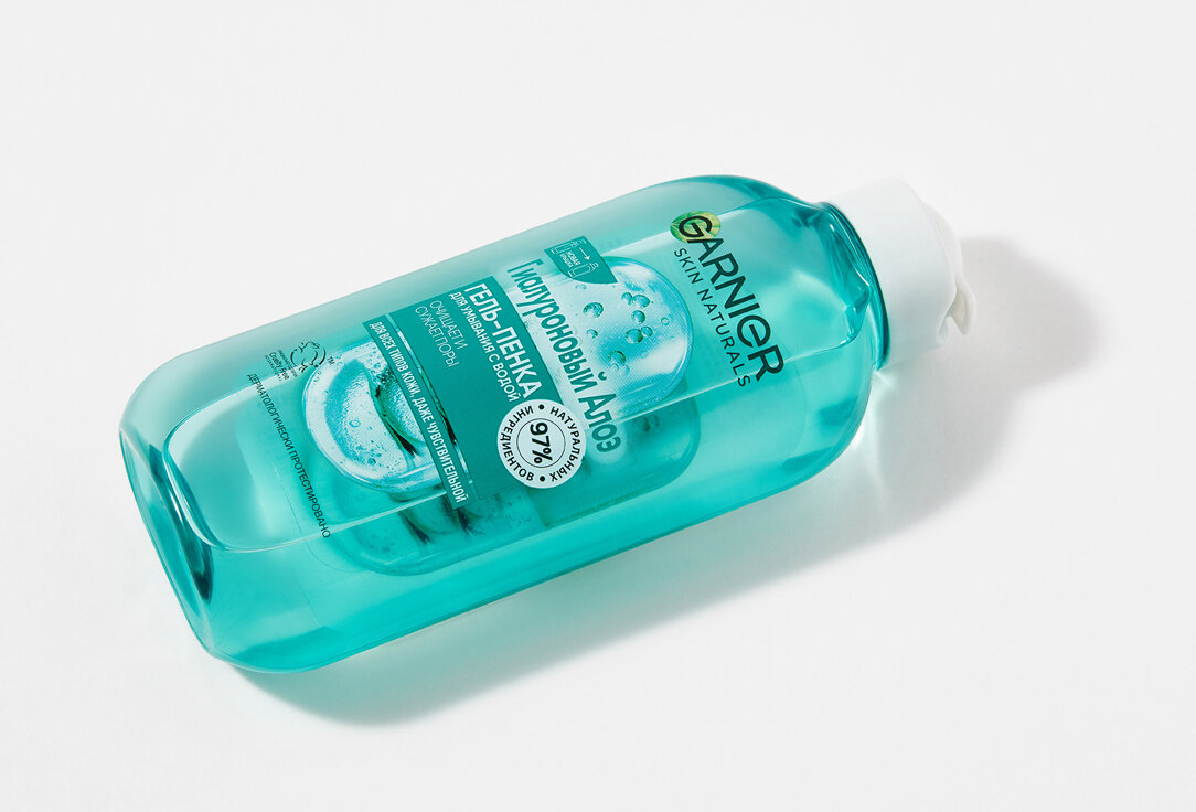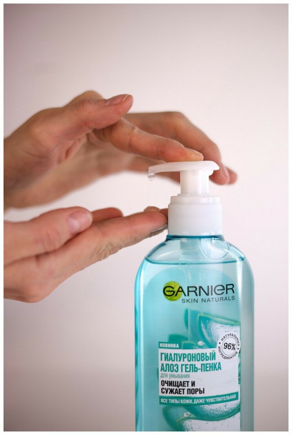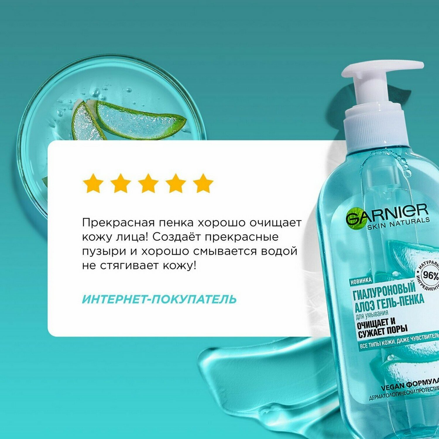 Garnier Skin Naturals Гиалуроновый Алоэ Гель-пенка для умывания обогащен органическим Алоэ Вера и Гиалуроновой кислотой, удаляет излишки кожного жира и загрязнения, делает поры менее заметными.