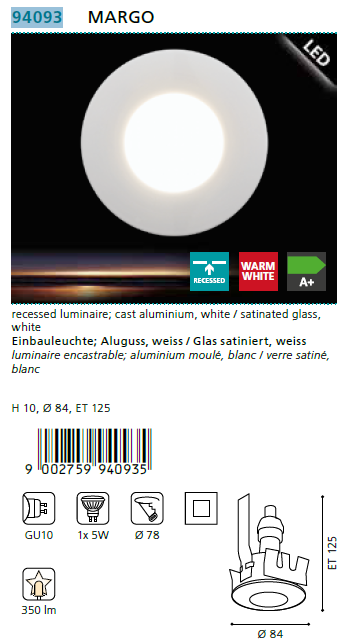 - Точечный светильник EGLO 82968, 69498 (EGLO 94521, 94058 FUEVA) обзор