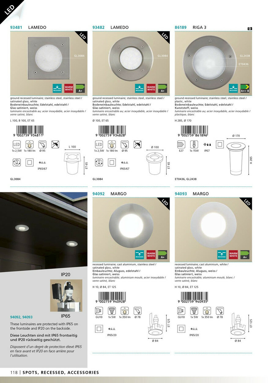 | Вид светильника | Уличные встраиваемые |