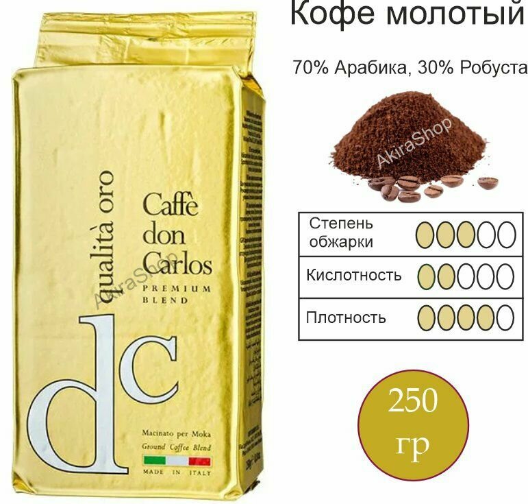 Сервис сравнения цен СкидкаГИД предлагает сравнить цены на товар «Кофе Don Carlos Qualita Oro молотый 250гр Carraro (4800022)»