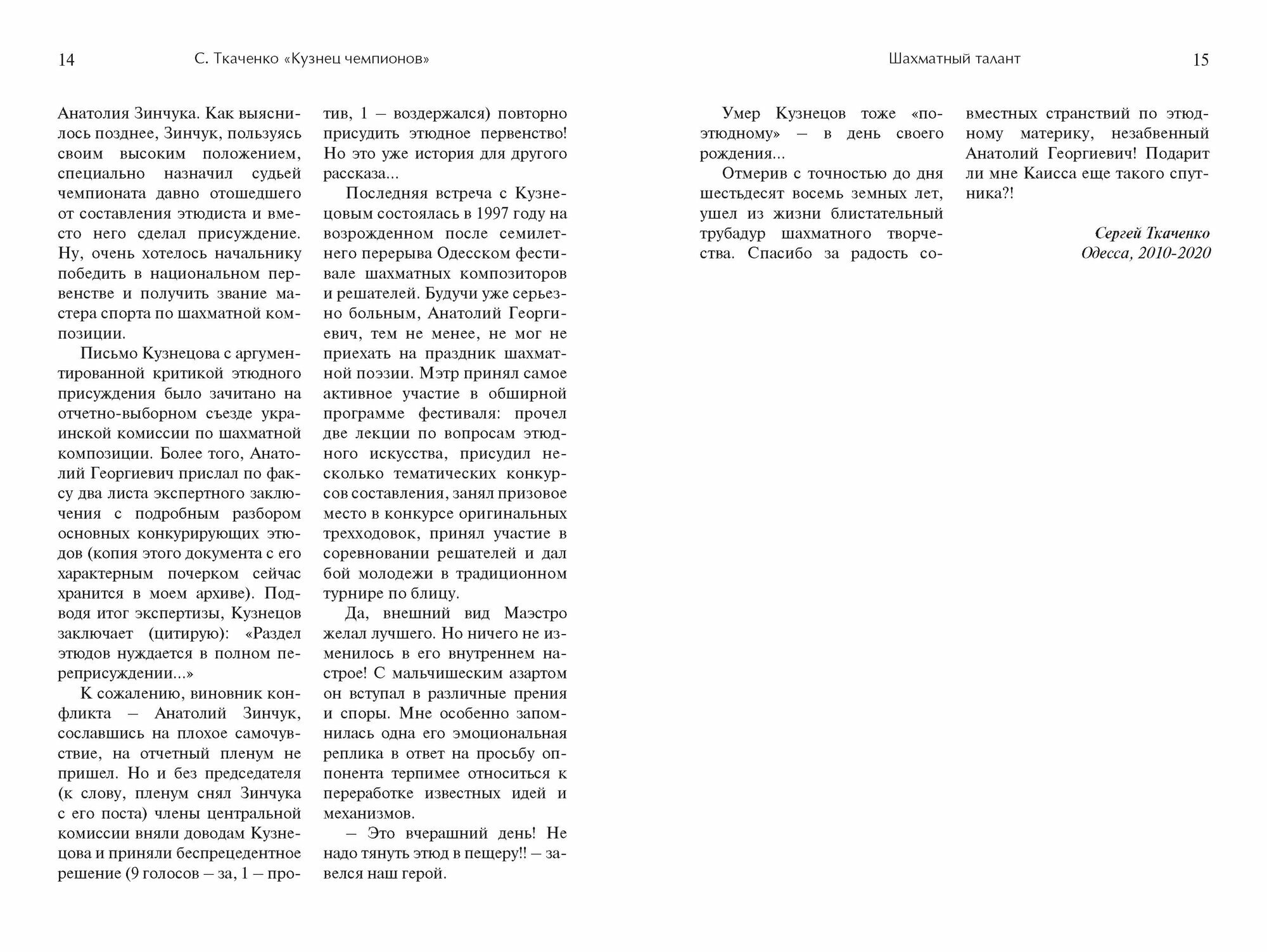 Кузнец чемпионов. Партии этюды и задачи дважды мастера Анатолия Кузнецова (Ткаченко Сергей Н.); Российская шахматная федерация, 2020