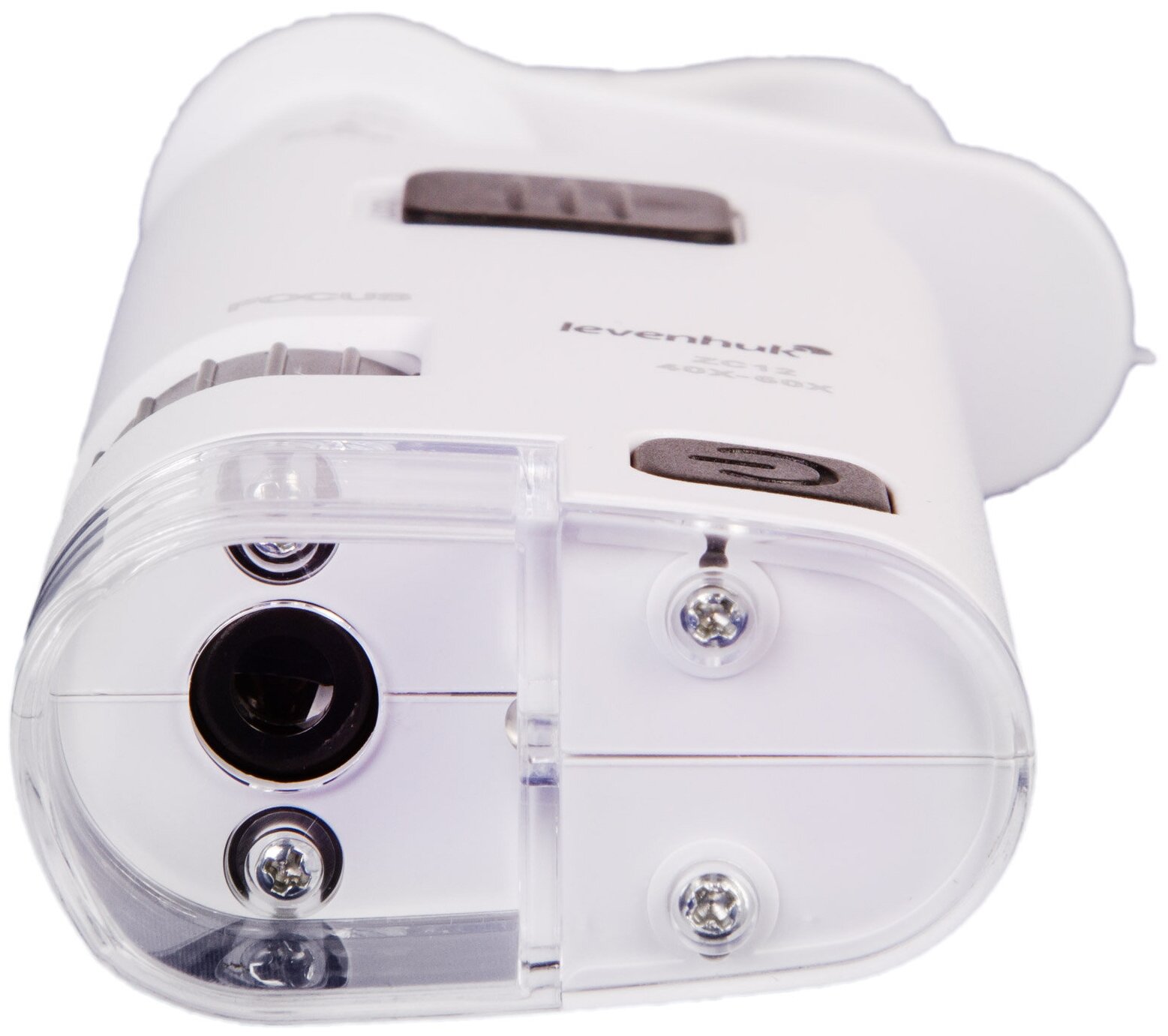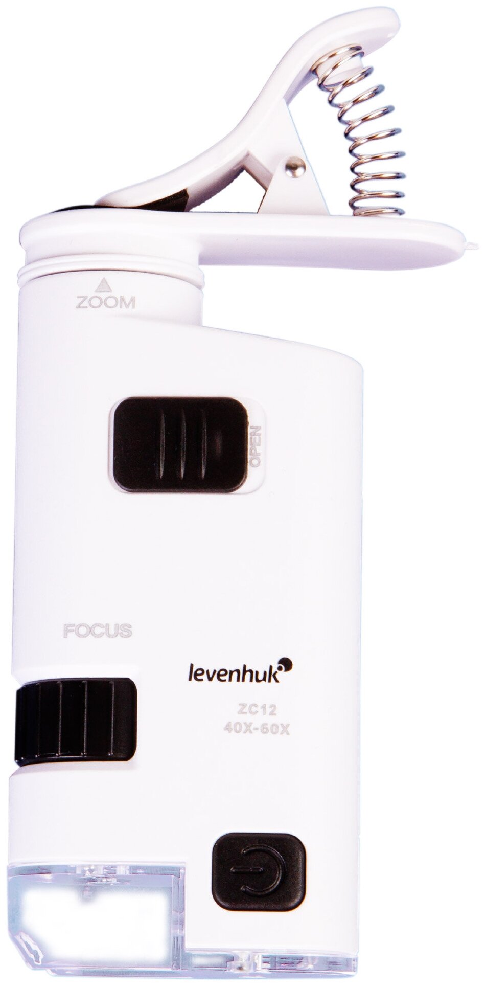 Levenhuk – это карманный световой микроскоп с плавно изменяемым увеличением. Его можно зафиксировать на смартфоне, чтобы вести фото- и видеосъемку увеличенного изображения на камеру. Оптический прибор отлично подойдет для изучения драгоценностей и минералов, монет, марок и любых миниатюрных предметов. Детям понравится возможность рассмотреть под увеличением листья, насекомых и другие объекты окружающего мира. Оптика микроскопа Levenhuk дает увеличение в диапазоне 40–60 крат. Чтобы подобрать нужное приближение, достаточно выдвинуть или задвинуть окуляр. После того, как оптимальная кратность выбрана, можно зафиксировать окуляр в нужной позиции – для этого на корпусе прибора предусмотрен блокиратор. Подстроить резкость можно с помощью кольца грубой фокусировки. Верхняя светодиодная подсветка работает от трех батареек типа ААА (приобретаются отдельно).