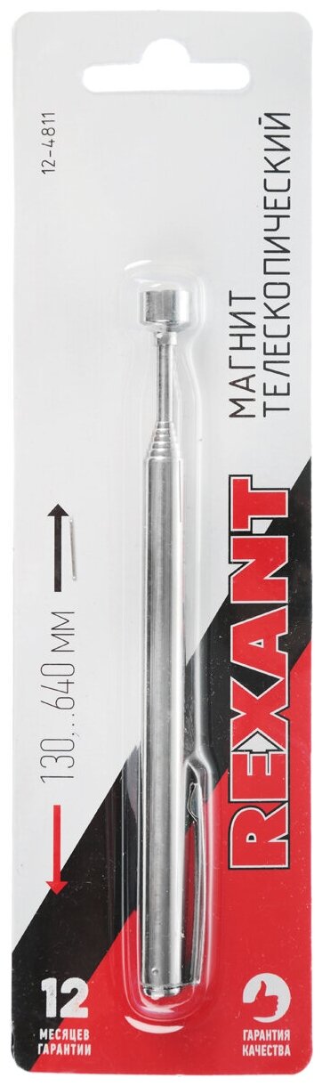 Телескопический магнит REXANT позволяет достать металлические предметы из труднодоступных мест.
