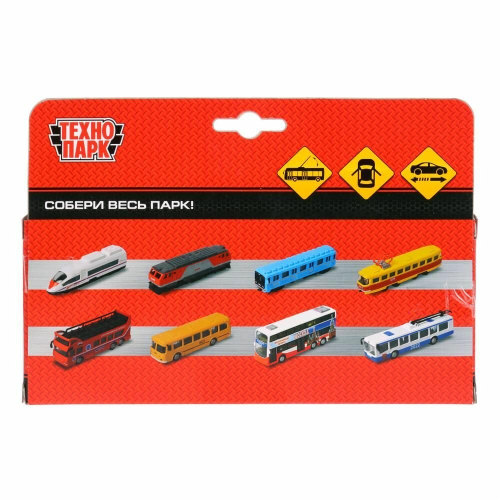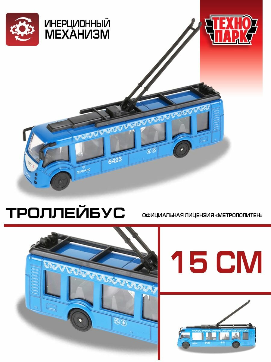 Металлический инерционный троллейбус «Технопарк» порадует и ребёнка, и коллекционера ярким цветом, скоростью и функциями.