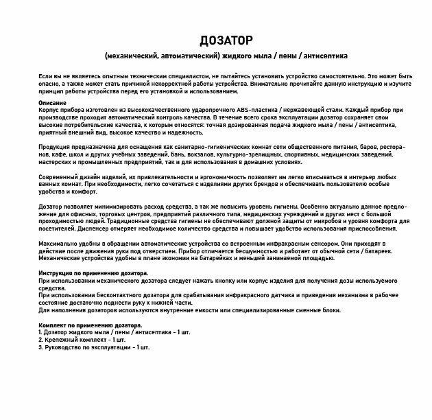 | Назначение | для жидкого мыла, для дезинфицирующих средств |