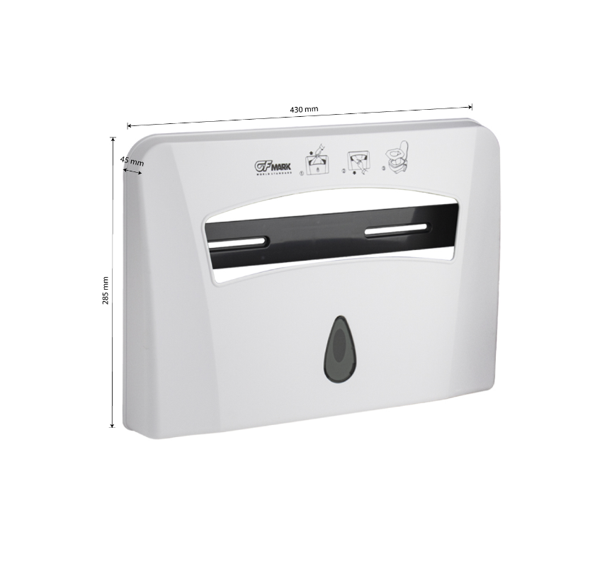 Контейнер для одноразовых сидений на крышку унитаза, пластиковый, белый, с глазком. Предназначен для удобной подачи индивидуальных бумажных покрытий на унитаз. Подходит для использования в туалетных комнатах офисов, торговых центров, аэропортов, вокзалов, ресторанов и т.д. Изготовлен из ударопрочного пластика АВS. Подходят любые накладки двойного сложения. Удобная конструкция диспенсера. Всегда извлекается только одно одноразовое сиденье на унитаз. Легкая смена блоков расходных материалов. Габаритные размеры: высота 285 мм, ширина 430 мм, глубина 45 мм. Вес - 0,700 кг,.