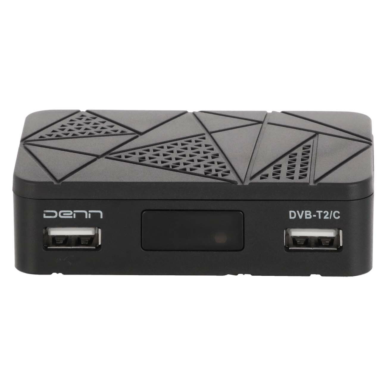 Благодаря приставке Denn ваш телевизор научится принимать передачи эфирного цифрового ТВ и выводить на экран контент с разрешением до 1920 х 1080 пикселей. Модель поддерживает стандарты DVB-T, DVB-T2 и DVB-C. В комплекте есть пульт дистанционного управления.usb-портыК устройству можно подключить флешку или портативный жёсткий диск. Это пригодится, чтобы смотреть записанные на них видеоматериалы или сохранять интересные фильмы и передачи.компактностьРазмеры прибора составляют 2,5 х 8,5 х 6,5 см, вес – всего 220 г. Его несложно переносить с одного места на другое, выбирая оптимальный вариант размещения.