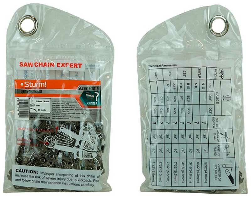 Цепь Sturm 0.050", 3/8", круглый зуб, 45 зв. () предназначена для электрических и бензиновых цепных пил.