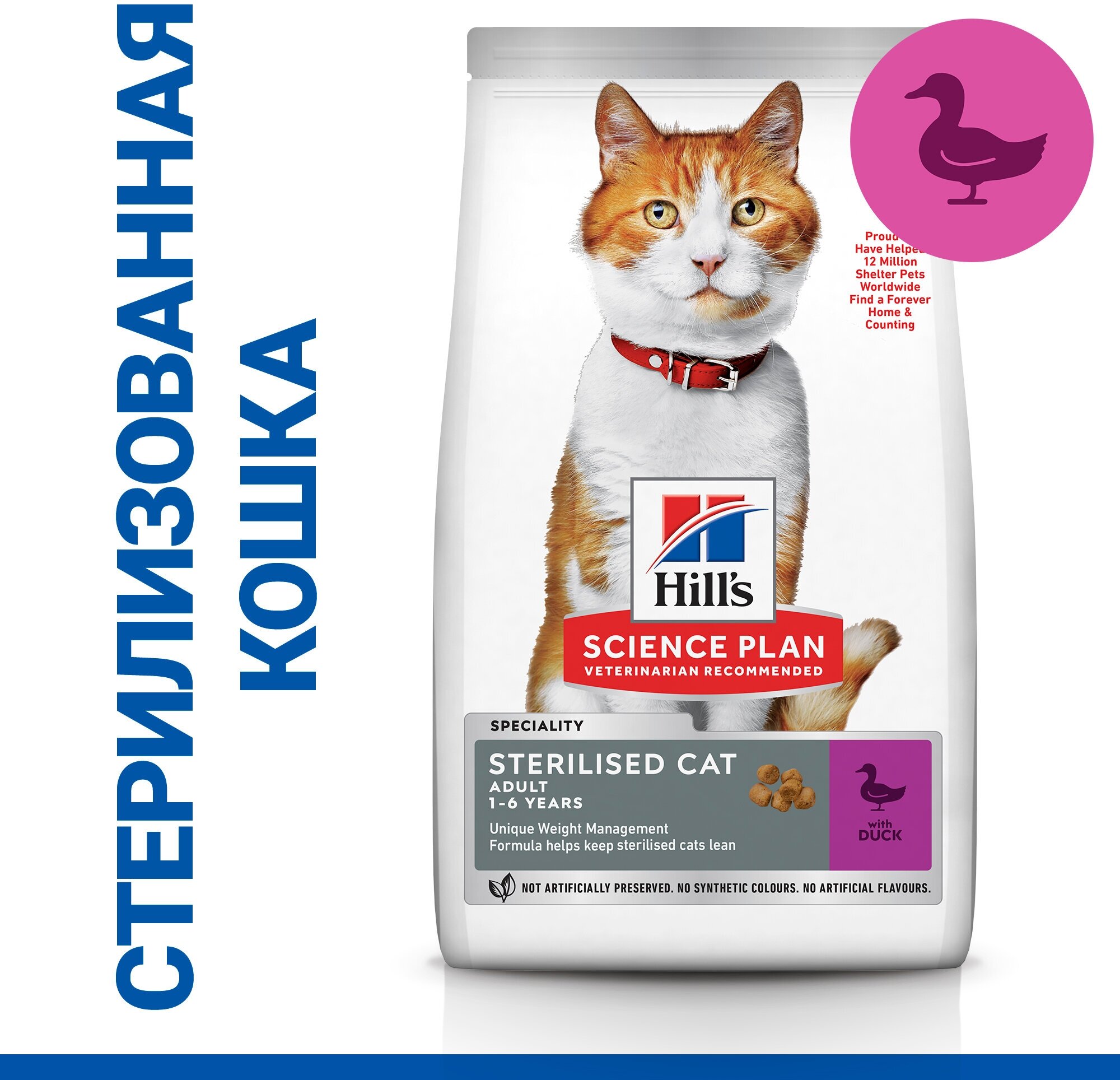 Сухой корм для кошек Hills Science Plan Sterilised с уткой предназначен для стерилизованных кошек всех пород от 6 месяцев до 6 лет. По ингредиентному составу относится к кормам суперпремиум класса. Полноценное, точно сбалансированное питание с уникальной формулой состава и комплексом антиоксидантов с клинически подтвержденным эффектом для поддержания здоровья и отличной физической формы вашего питомца.