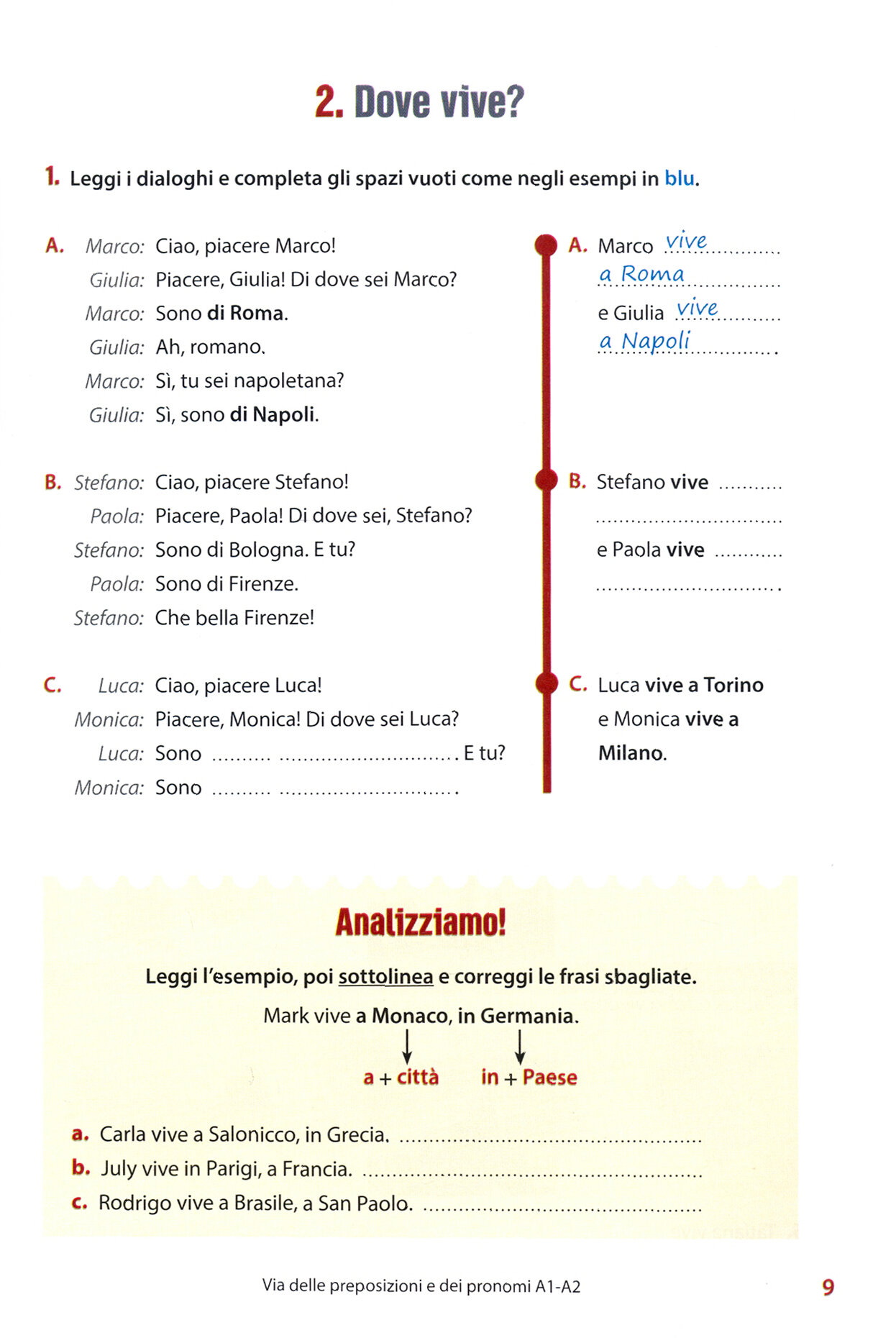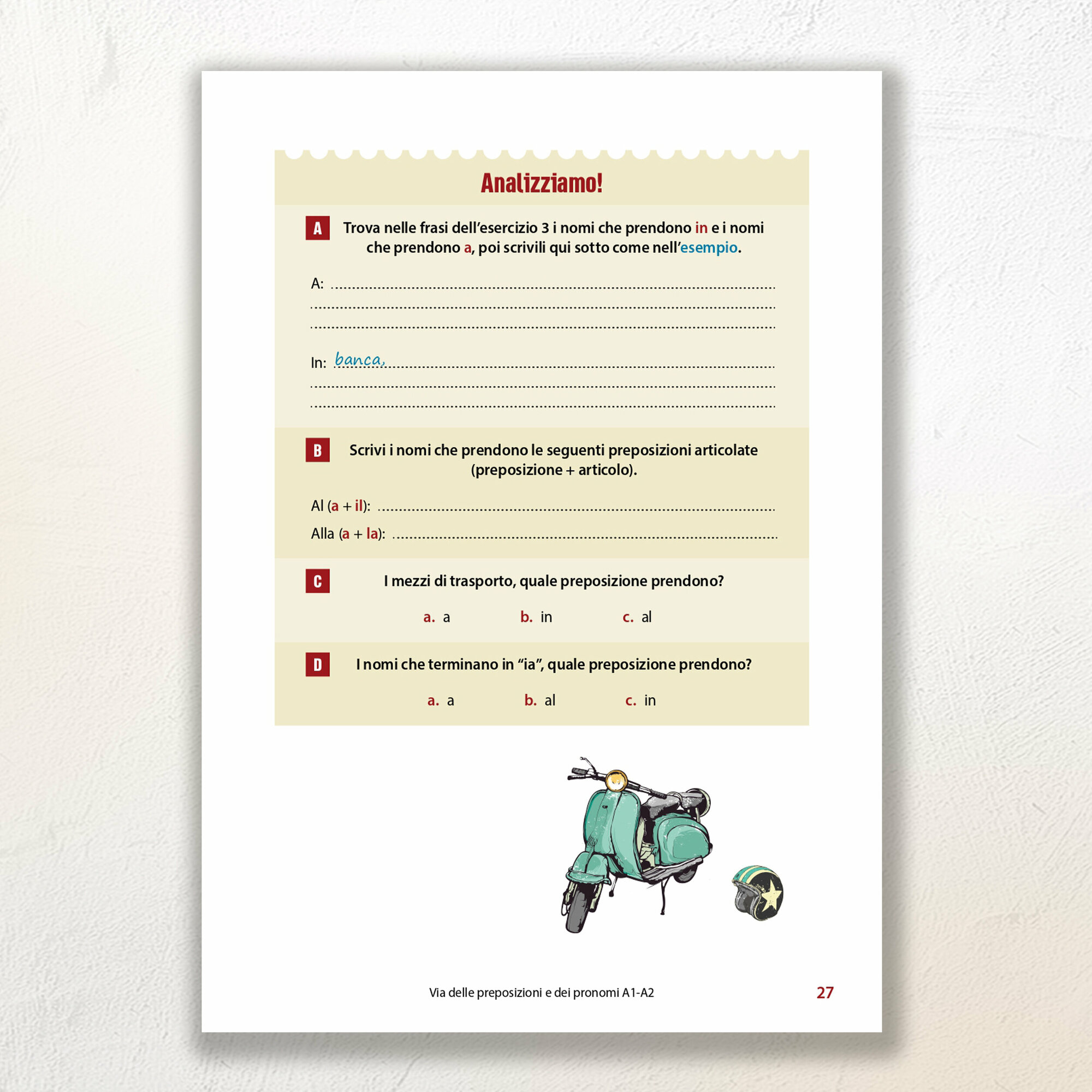 Via delle preposizioni e dei pronomi A1-A2 consta di tre sezioni: