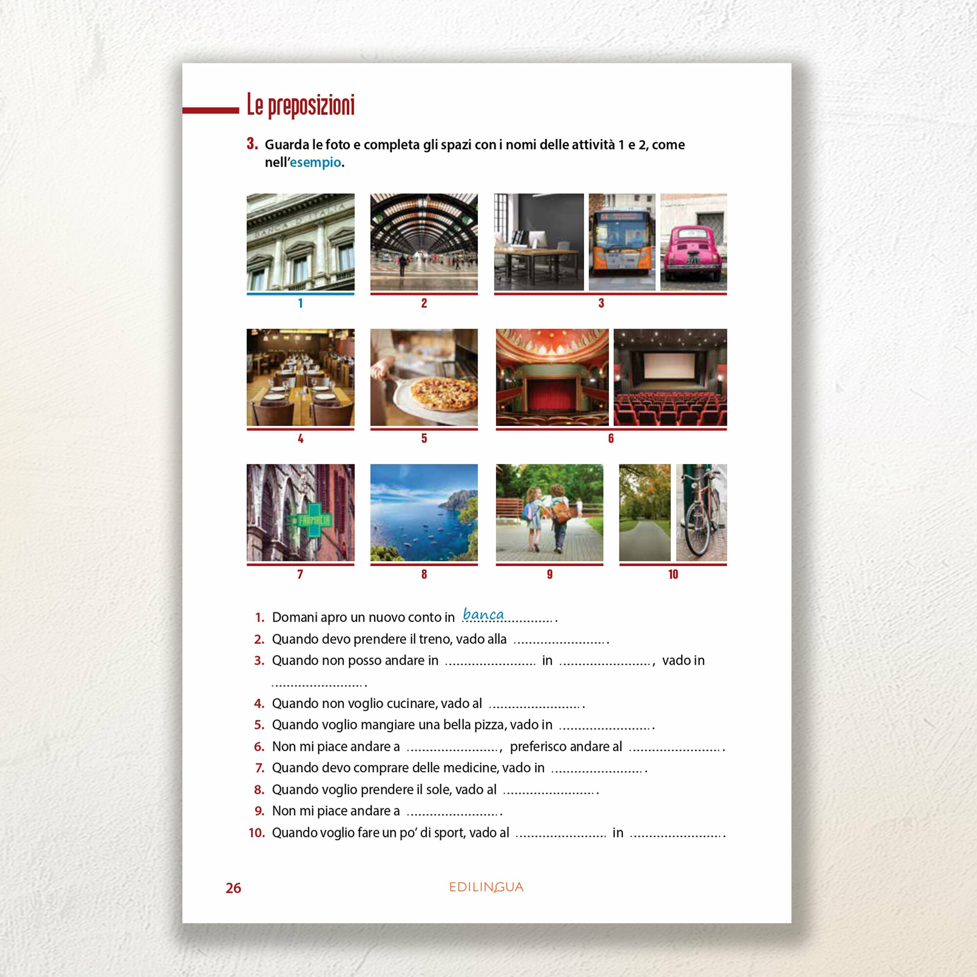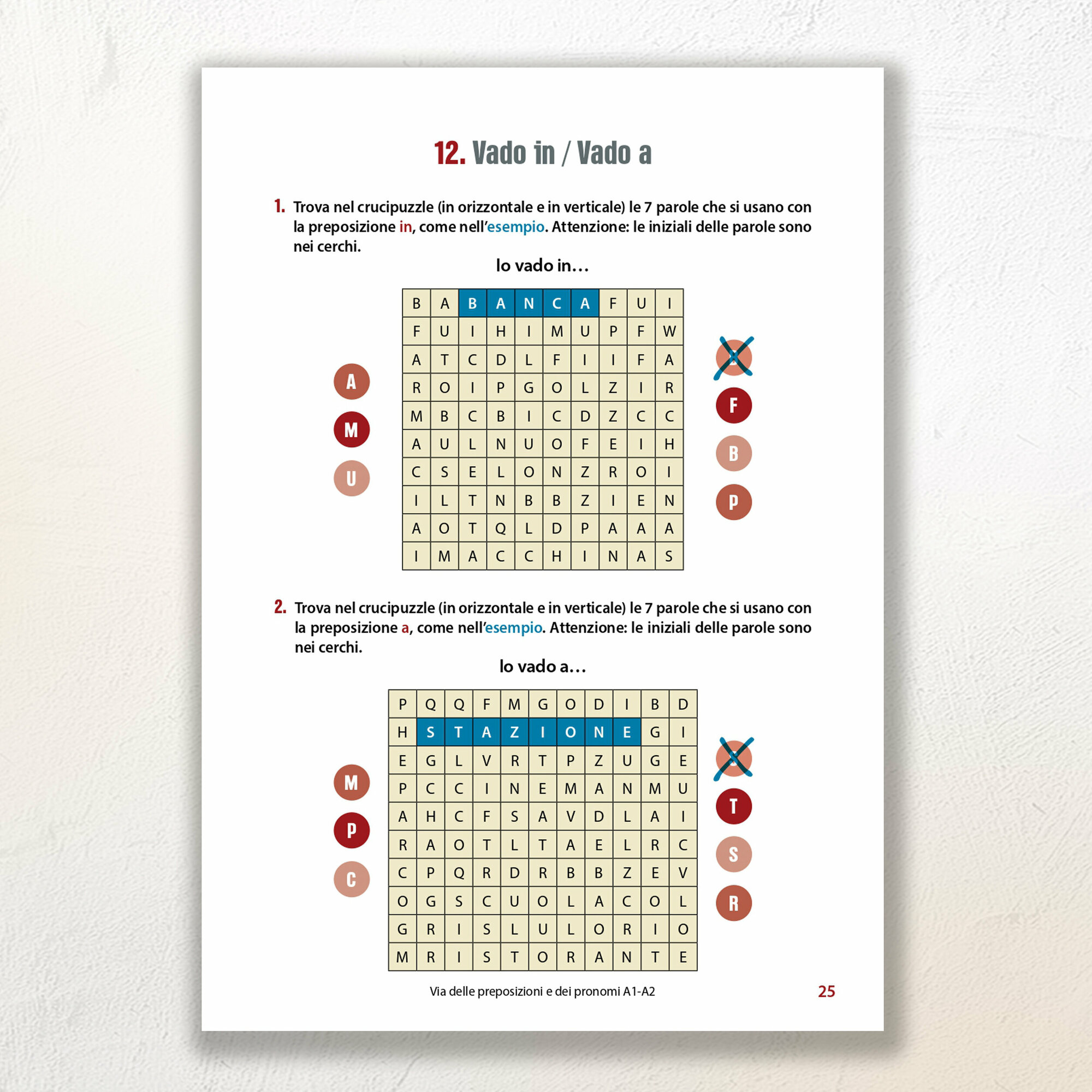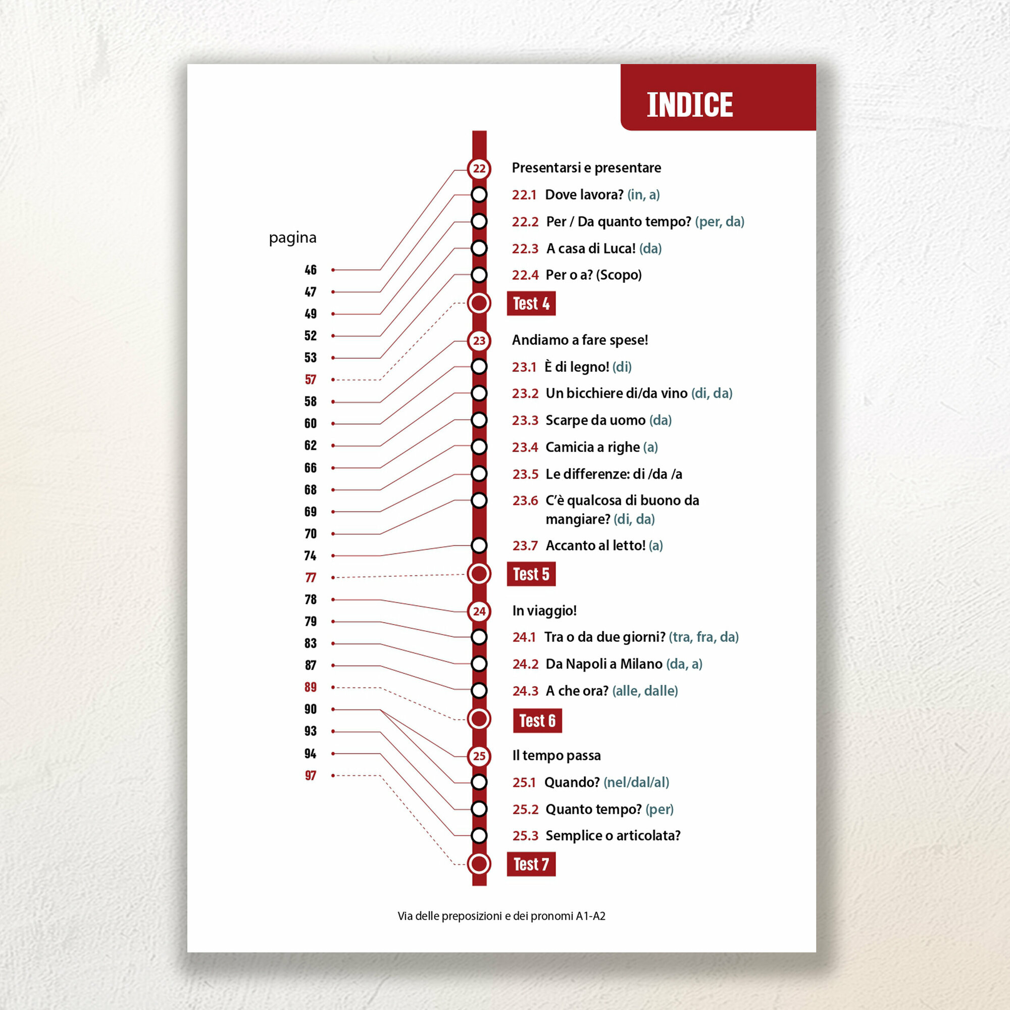 Le preposizioni, 25 capitoli intercalati da 7 test di progresso che permettono di monitorare il percorso di apprendimento;