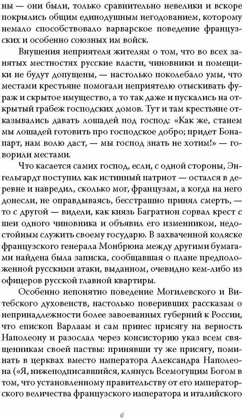 По поводу оформления книги, лично мне понравилось. Красивая обложка, в руках держать приятно. Листы правда в желтизну уходят, но достаточно плотные, что радует. По содержанию, книга очень интересна, а главное, что не мало важно в исторической литературе, она легко читается. В книге описывается армия Наполеона. Все выдержки, описания сражений, описания русских солдат написаны от лица французов. Очень познавательно и дополняет уже имеющиеся знания. Интересно читать и узнавать, что не только между некоторыми русскими генералами были натянутые отношения. Но и в французской армии было тоже самое, если не хуже. Оказалось интересным и поразительным, несносный характер генерального полководца Даву и его постоянный конфликт с Мюратом, которого, в принципе, выносить не мог. Я думаю, что каждый, подчерпнёт для себя из книги что новое и интересное!