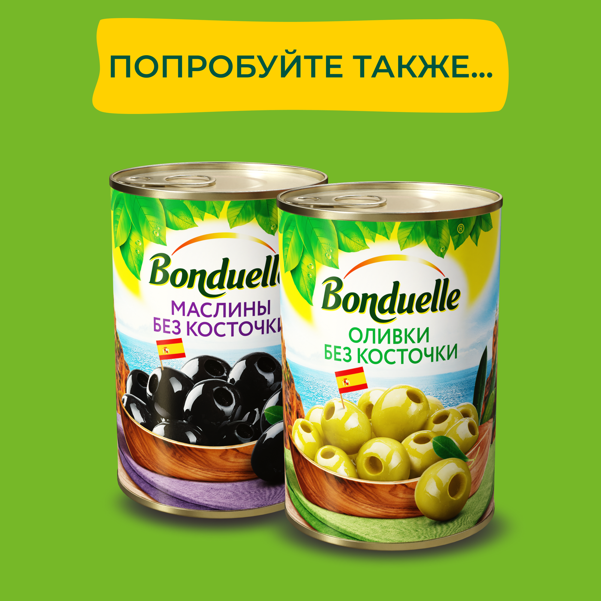 Маленькое солнечное счастье — так можно описать вкус маслин Bonduelle. Поэтому без них никак не обойтись в приготовлении вкусных и изящных закусок, особенно канапе и тарталеток. В банку, в которой вы никогда не найдете лишней воды, попадают только тщательно отобранные по размеру, зрелые плоды со сбалансированным вкусом.