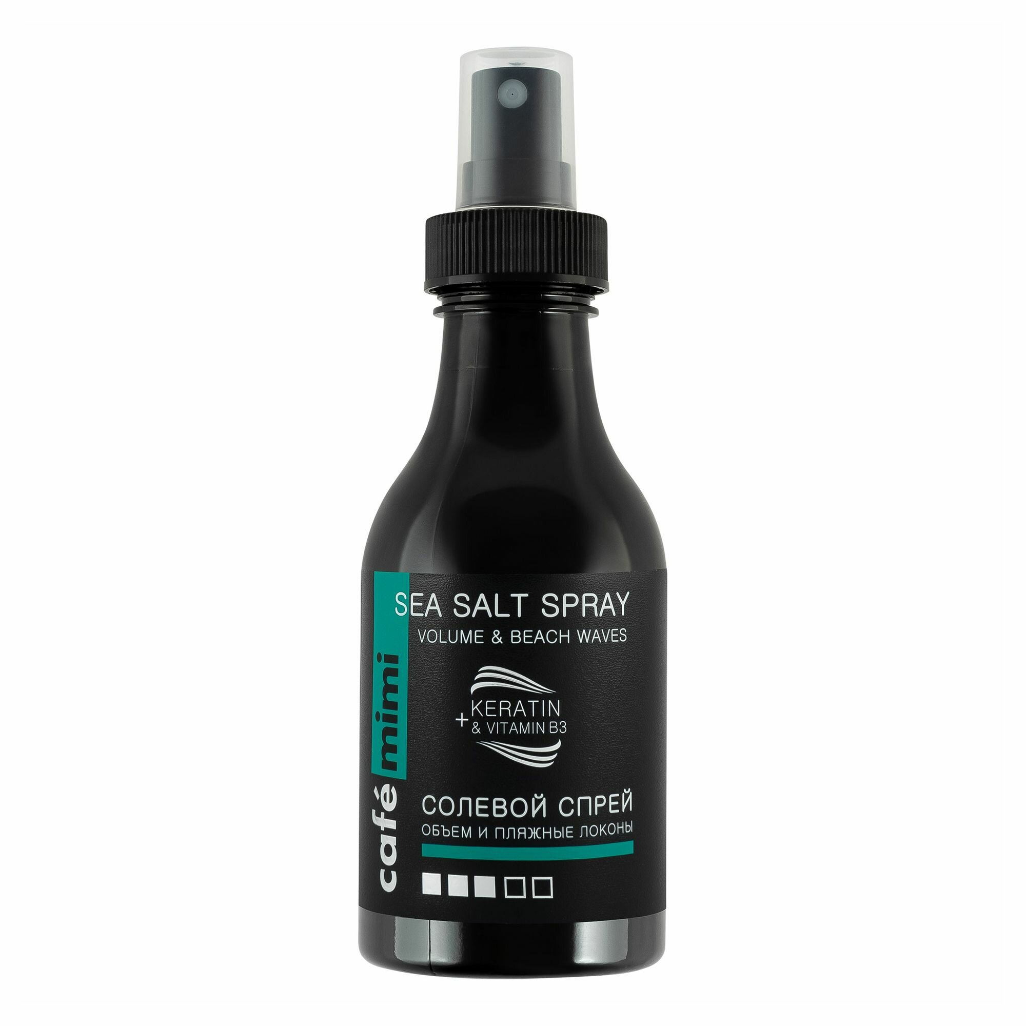 Солевой спрей "Объем и пляжные локоны" CAFE MIMI с минералами морской соли - идеальное средство для создания непринужденных объемных укладок в «пляжном» стиле. Спрей придает волосам плотность и объем, создает идеальный пляжный образ и обеспечивает легкую надежную фиксацию. Морская соль и кератин оказывают укрепляющее и восстанавливающее действие на структуру волос и придают им жизненную силу и матовый финиш. Экстракт морских водорослей и Витамин В питают и увлажняют волосы.