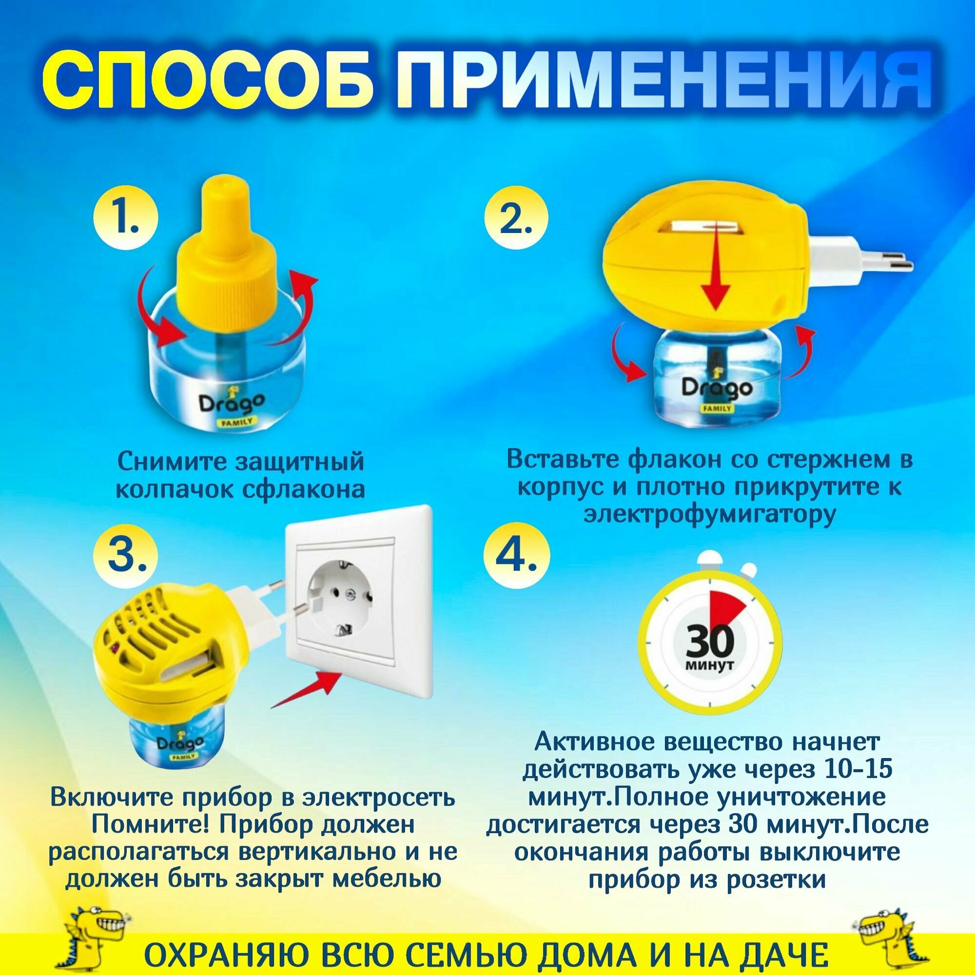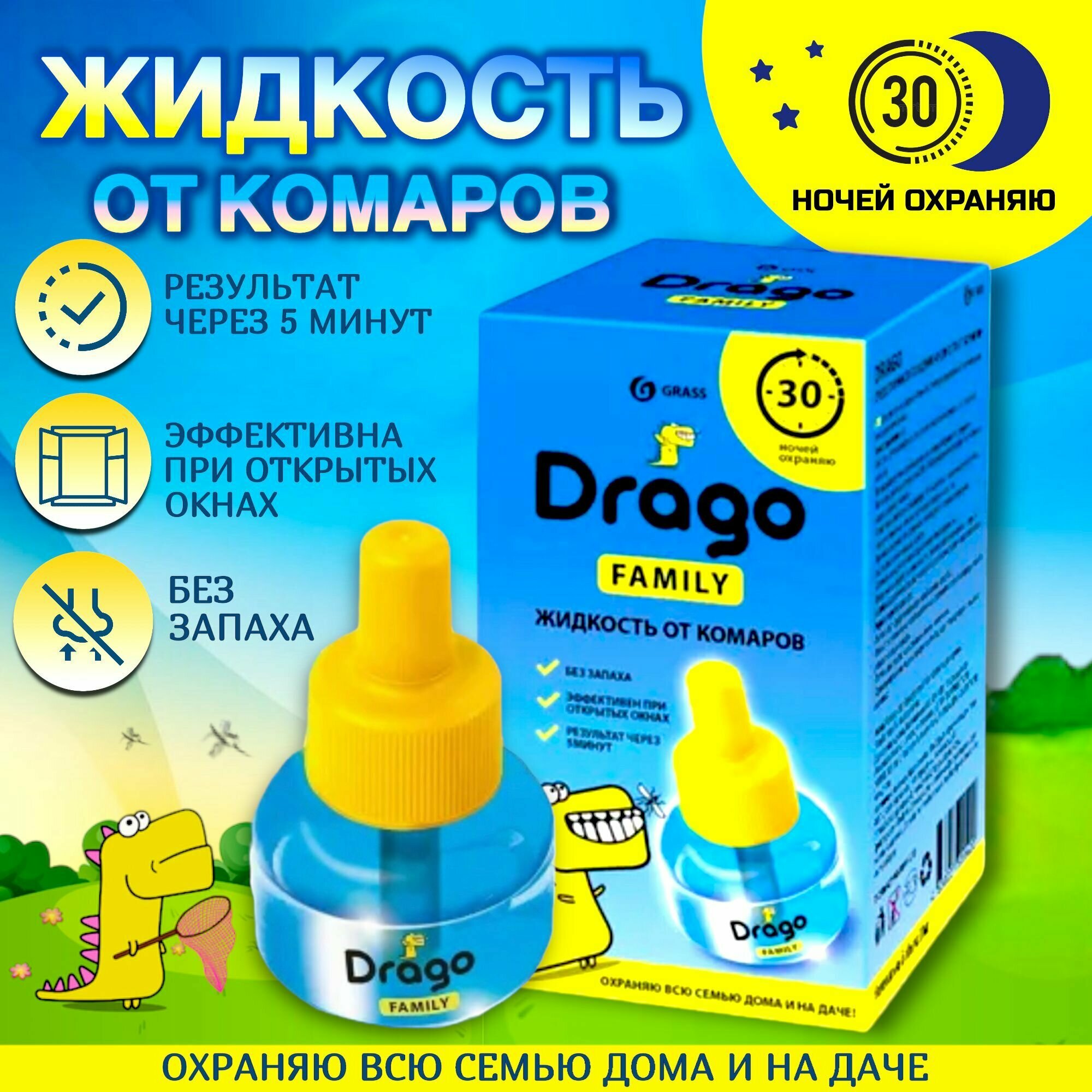 Сервис сравнения цен СкидкаГИД предлагает сравнить цены на товар «Жидкость от комаров Drago Family 30мл»