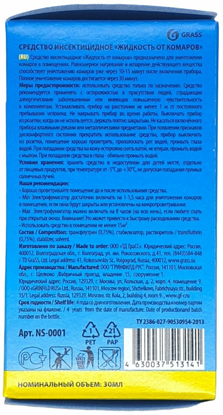 | Комплектация | флакон с жидкостью для фумигатора |