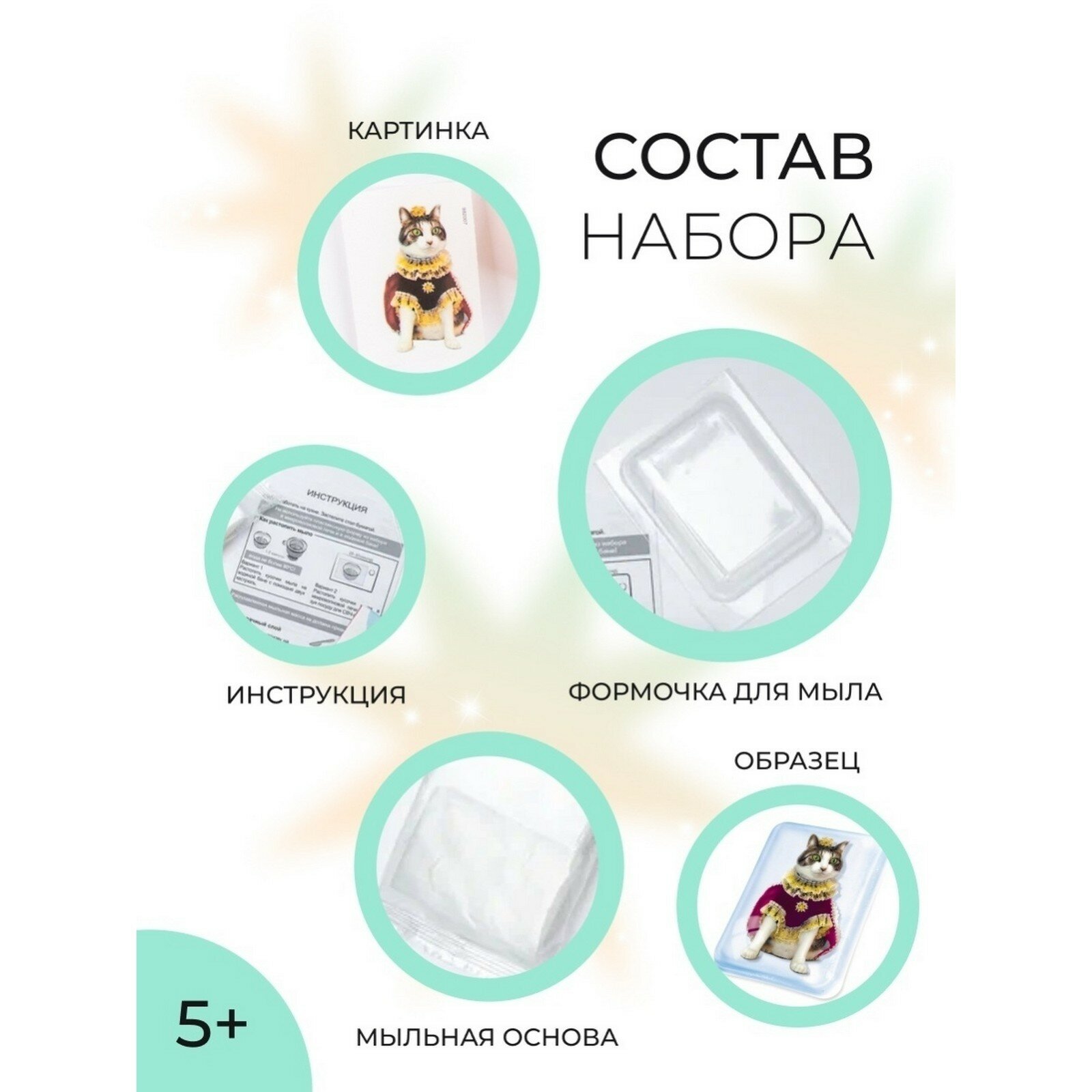 В набор входит: мыльная основа, картинка, формочка для мыла, инструкция.