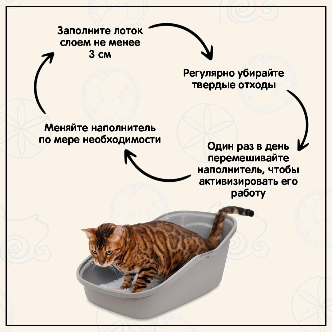 Не утилизировать в унитаз. Экономичен в использовании, не требует ежедневной смены. Можно использовать в кошачьих лотках с решеткой.