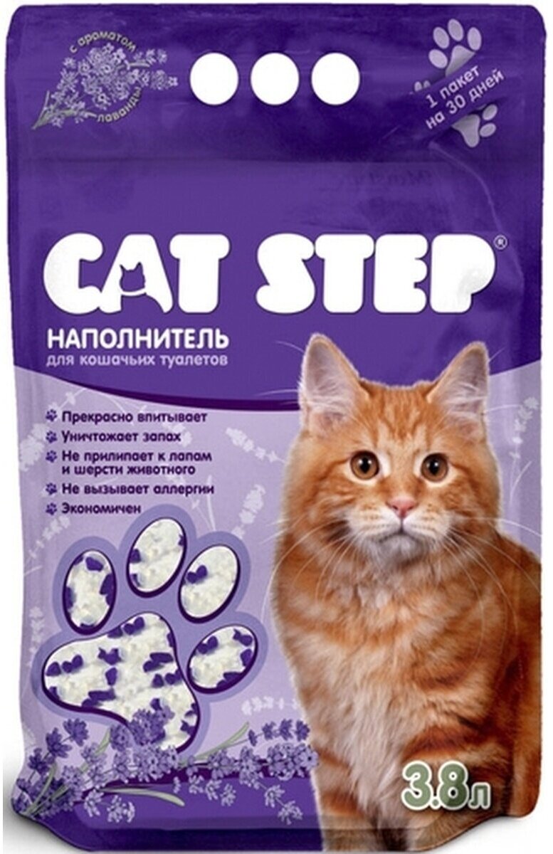 Cиликагелевый наполнитель для кошачьего туалета CAT STEP Arctic Lavеnder моментально впитывает влагу и уничтожает запахи. Пористая структура кристаллов обеспечивает их высокую способность к поглощению жидкостей и запахов.