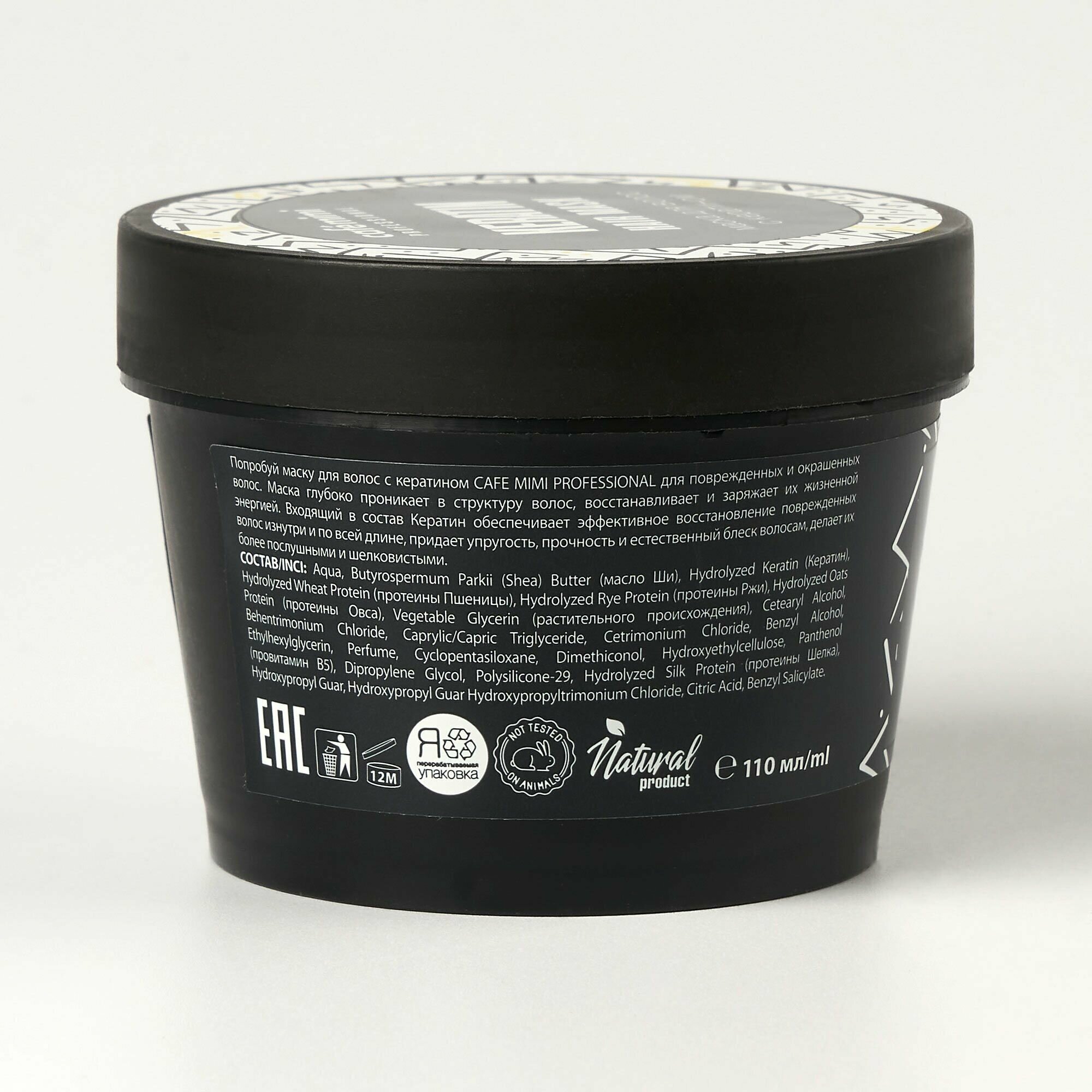 Маска для волос Cafe mimi Keratin 110 мл для поврежденных и окрашенных волос. Маска глубоко проникает в структуру волос, восстанавливает и заряжает их жизненной энергией. Входящий в состав кератин обеспечивает эффективное восстановление поврежденных волос изнутри и по всей длине, придает упругость, прочность и естественный блеск волосам, делает их более послушными и шелковистыми.