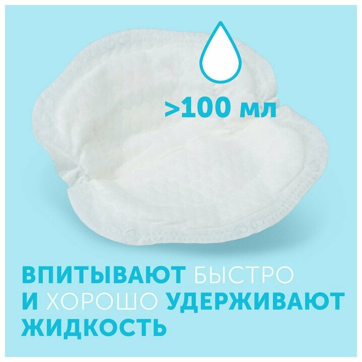Впитывающие более 100 мл, безворсовые, мягкие вкладыши идеальны для правильной гигиены груди во время кормления. Вкладыши можно использовать с самого рождения малыша, а также при обработке сосков профилактическими или заживляющими кремами и мазями.
