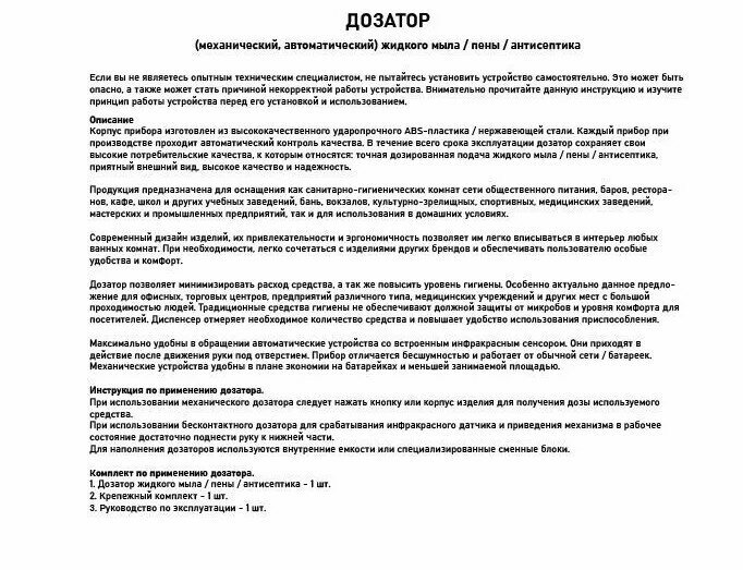 | Назначение | для жидкого мыла, для дезинфицирующих средств |