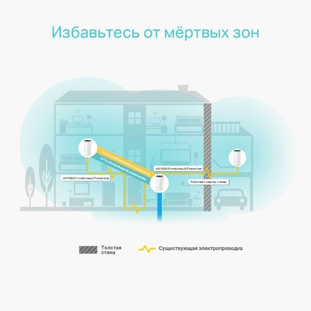 Устройство позволяет передавать данные между модулями на скорости до 1000 Мбит/с по стандарту Powerline. Стандарт Powerline использует электрическую проводку для формирования более надежной mesh-сети между модулями и создавать поистине бесшовное покрытие.