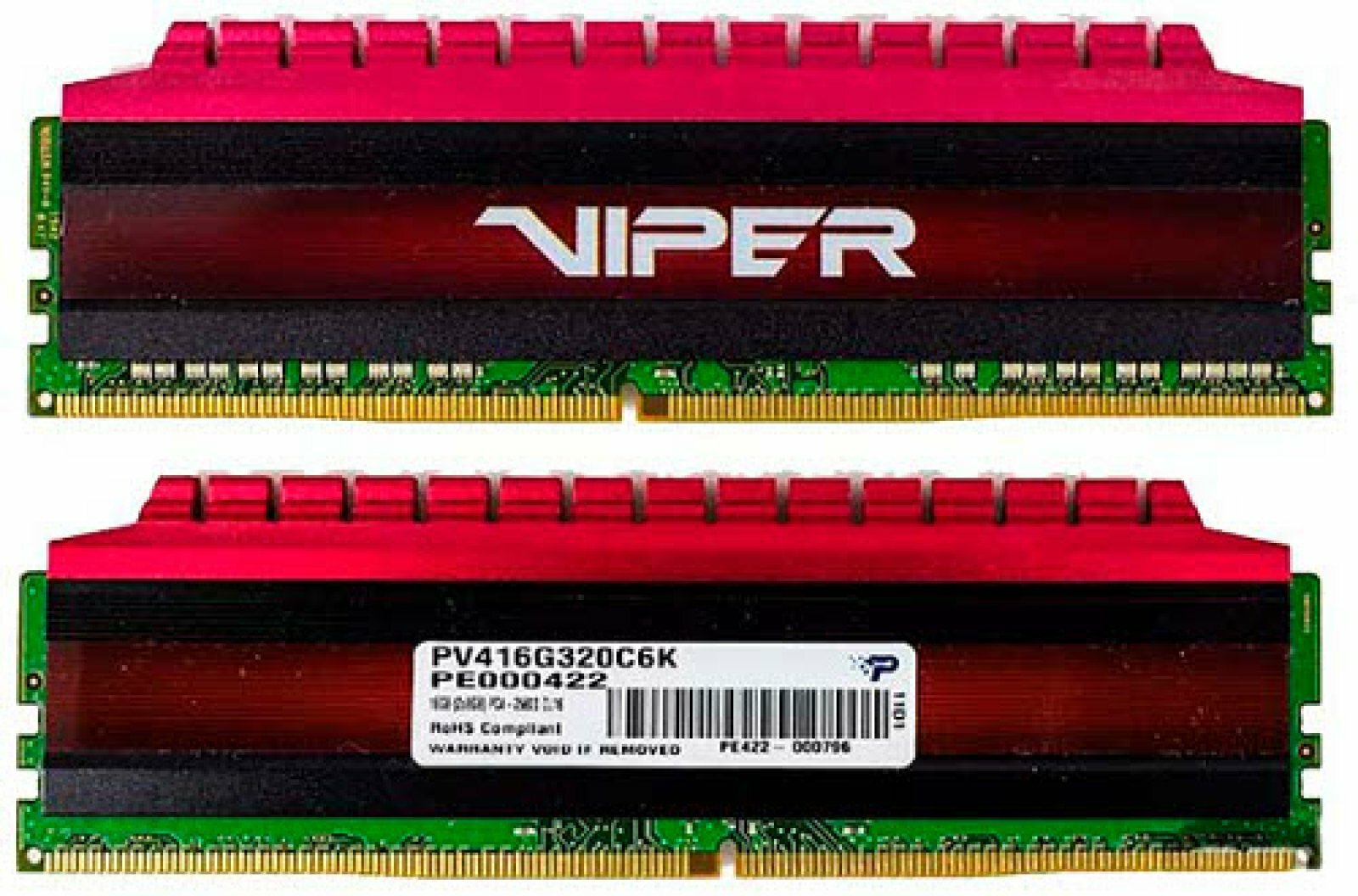 Модули памяти Patriot PV416G320C6K Модули памяти Patriot Viper 4 Red разработаны и протестированы по высшему классу быстродействия. Они способны мгновенно увеличить производительность вашей системы и легко удовлетворяют самым жестким требованиям любого профессионала, геймера или энтузиаста. Черный цвет текстолита и эксклюзивный дизайн радиаторов охлаждения не оставят никого равнодушным.