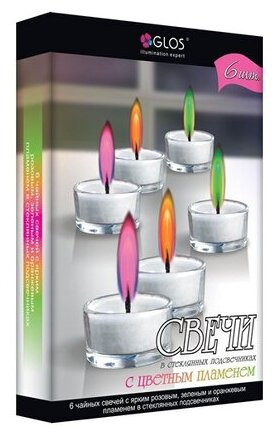 Украсьте праздничный стол горящими цветопламенными свечами в стеклянных подсвечниках. Свечи с ярким цветным пламенем достойно украсят любое торжество. 2 набора цветов: 1. красный, зеленый и оранжевый. 2. розовый, зеленый и оранжевый. Время горения одной свечи: 60 мин. В упаковке 6 свечей. Диаметр подсвечника - 4 см. Размер упаковки - 160х110х30 мм. Не токсично.