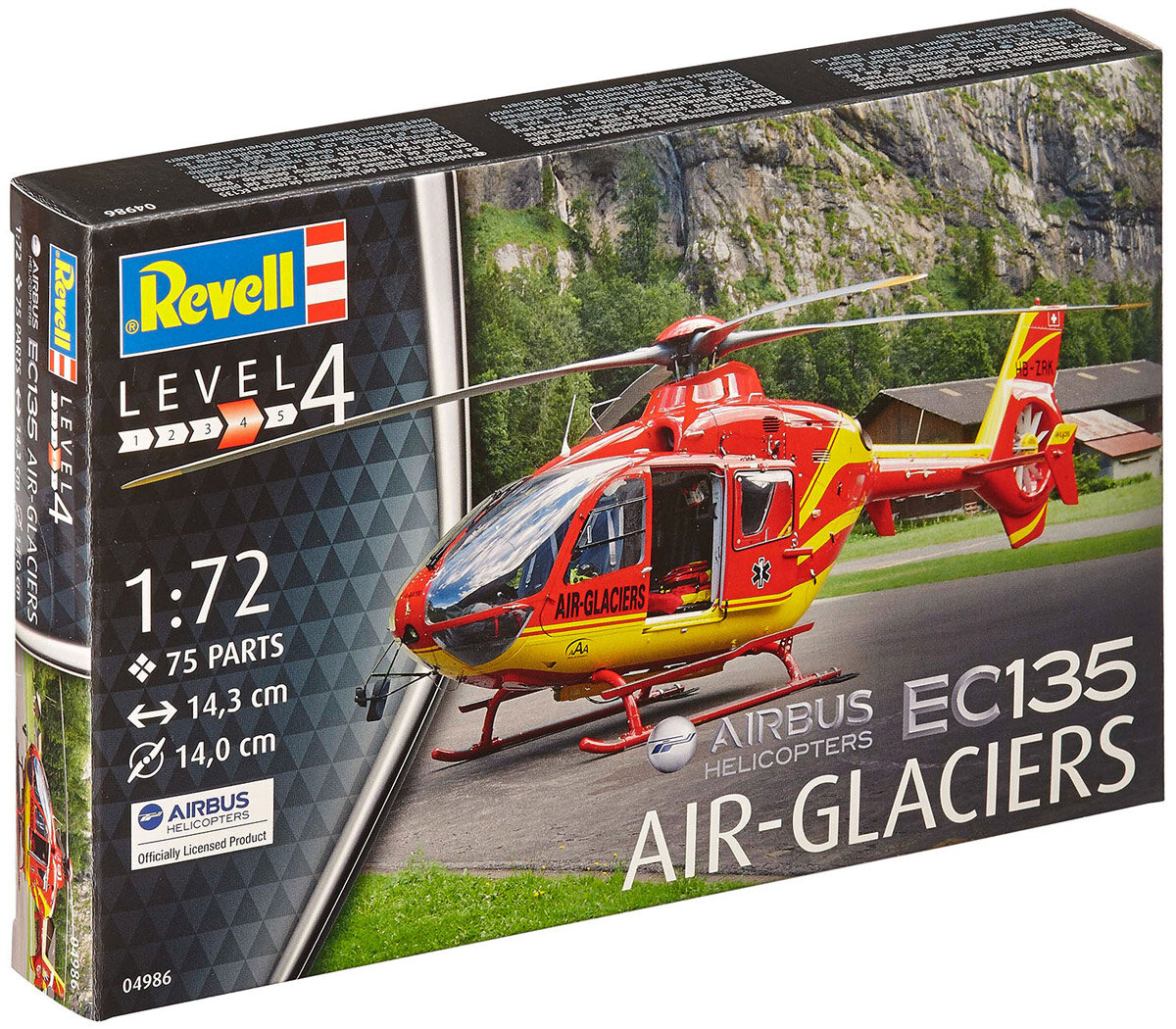 Сборная модель вертолета Airbus EC135 в масштабе 1:72. Revell предлагает собрать данный вертолет в цветах авиакомпании Air-Glaciers. Это вторая по значимости авиакомпания Швейцарии.