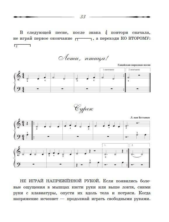 учеников. Теоретическая часть не перегружена сложными понятиями, а нотный текст - лишними знаками. Забавные классические иллюстрации и тщательно подобранные пьесы и песенки помогают разнообразить уроки и делают самостоятельные занятия лёгкими и увлекательными.
