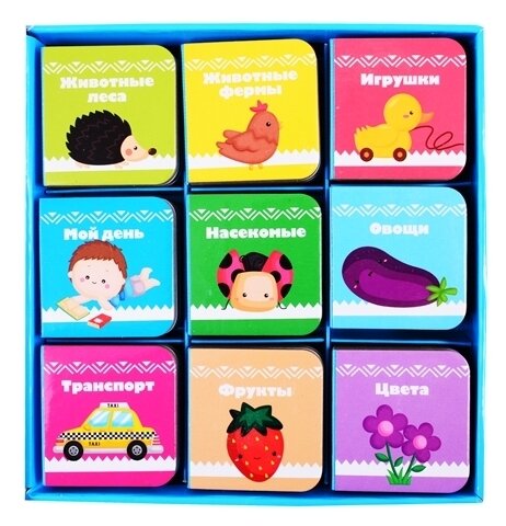 Узнавай, играй, учись! Вместе с этой книжкой малыш сможет совмещать эти занятия. 9 книжек-кубиков расскажут ребенку о самых главных и базовых понятиях и предметах - цветах, эмоциях, овощах и фруктах, животных и многом другом.