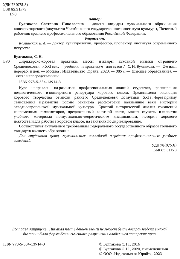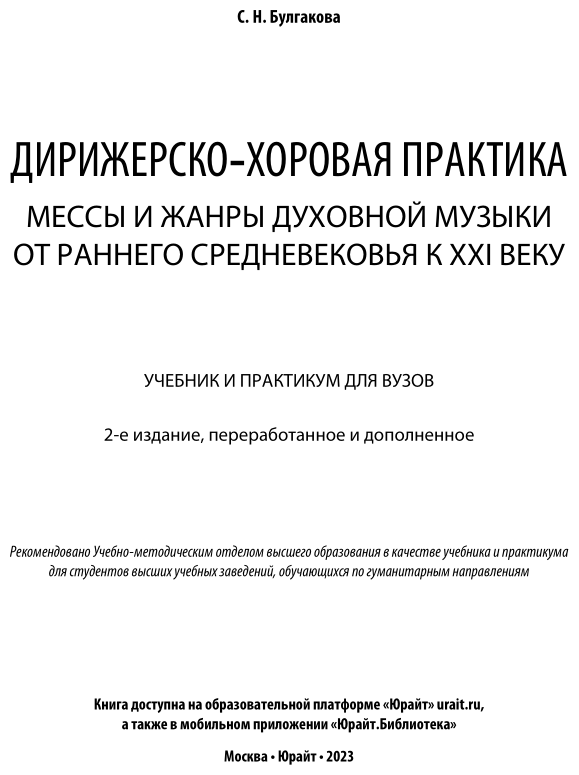 Дирижерско-хоровая практика: мессы и жанры духовной музыки от раннего Средневековья к XXI веку 2-е изд. пер. и доп. Учебник и практикум для вузов (Светлана Николаевна Булгакова); ЮРАЙТ, 2020