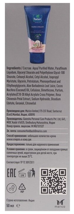 Крем для рук Parachute Энергия кокоса алоэ веры и розы 50мл (1084261)