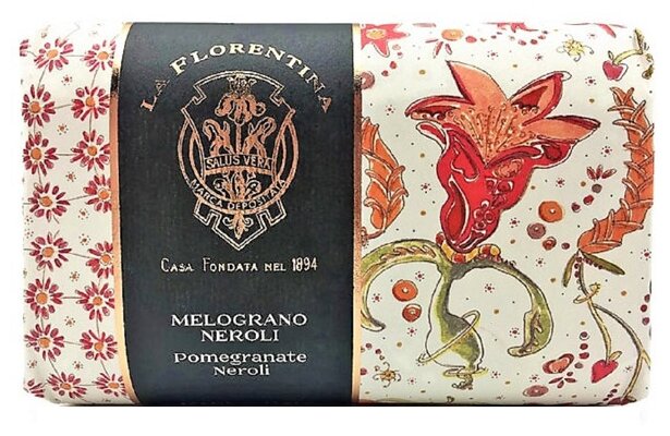Мыло La Florentina - это душистый и красивый островок Италии, способный создать сказочое настроение в любой ванной комнате. Мыло из коллекции "Таинственный Сад" с ароматом сладкого граната и благородных цветов нероли станет отличным подарком по любому случаю, украсит ваш дом и наполнит его волшебным, манящим ароматом фруктов и тропических цветов. Деликатное итальянское мыло обогащено оливковым маслом, натуральными экстрактами и благоухает неповторимым цветочно-фруктовым запахом Флорентийских садов. Мыло бережно заботится даже о самой чувствительной коже, не пересушивая ее, не вызывает раздражения и ощущения стянутости.