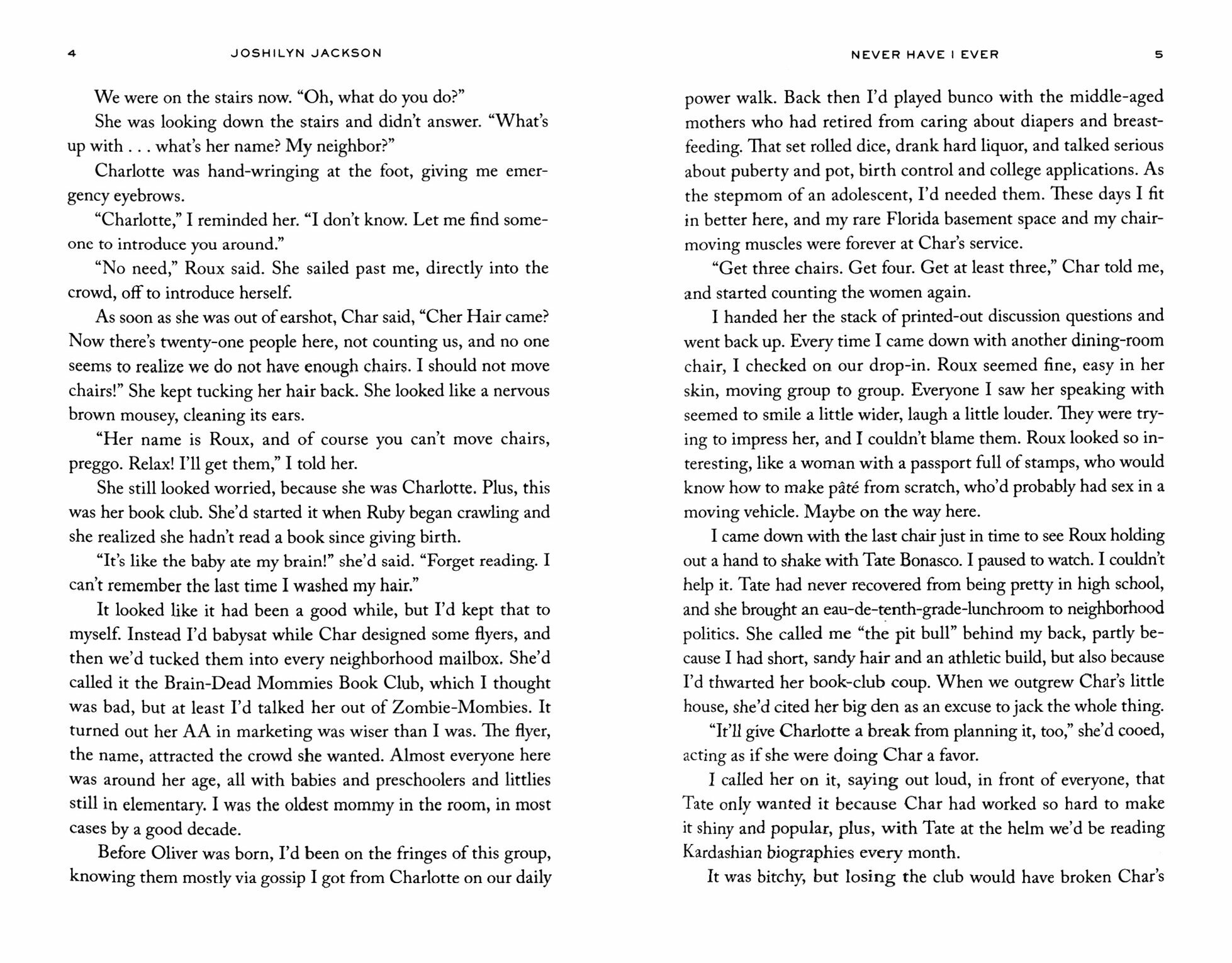 It starts as a game at a book group one night. Never Have I Ever... done something I shouldn't.