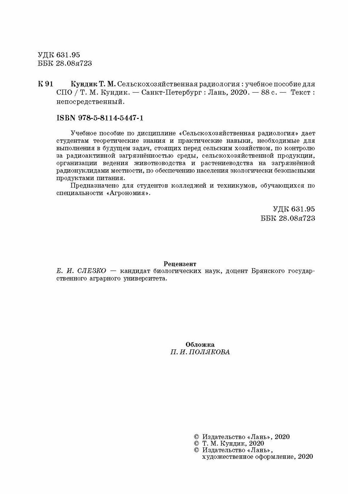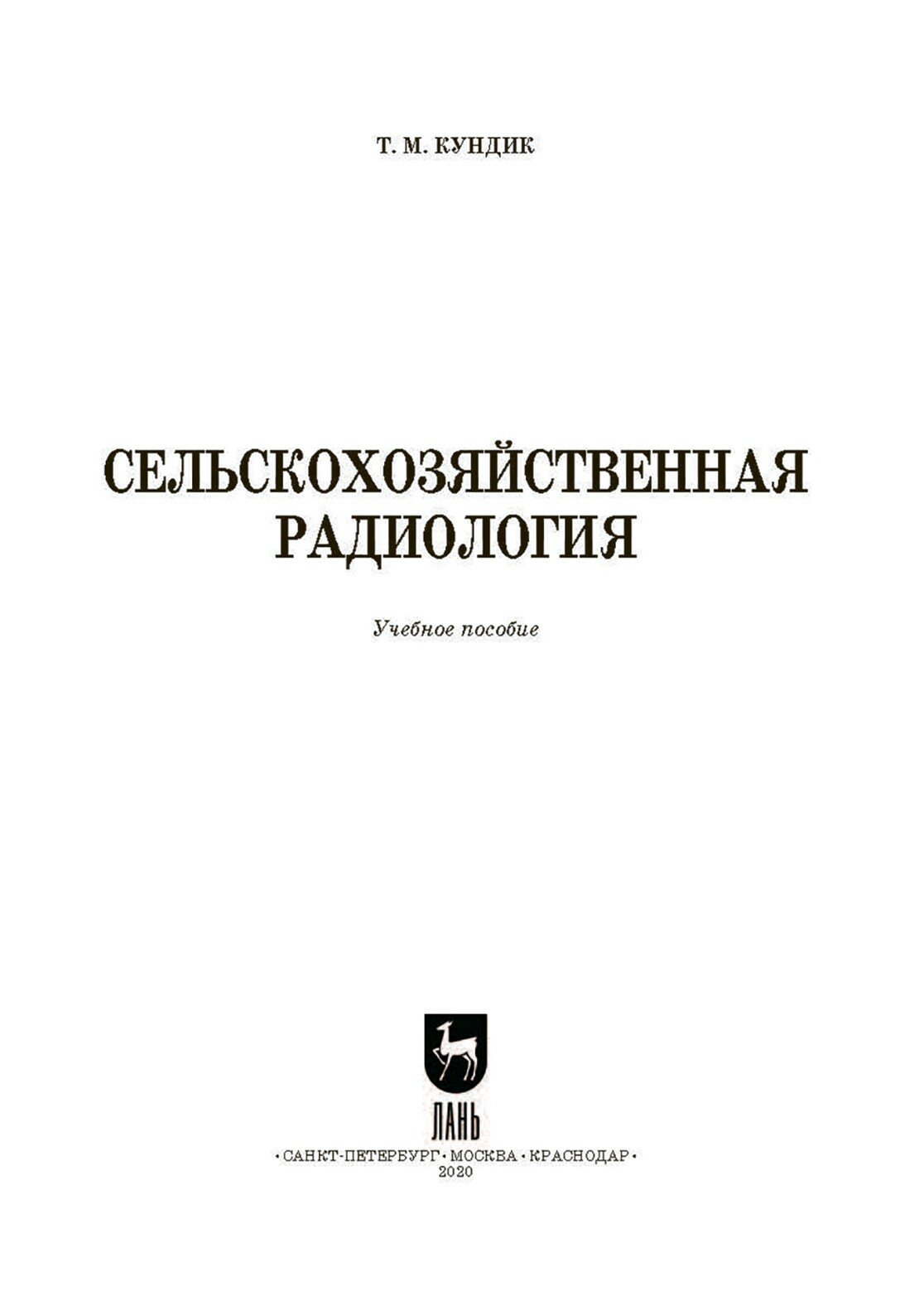 Сельскохозяйственная радиология.Уч.пос.СПО (Т. М. Кундик); Издательство ЛАНЬ, 2020