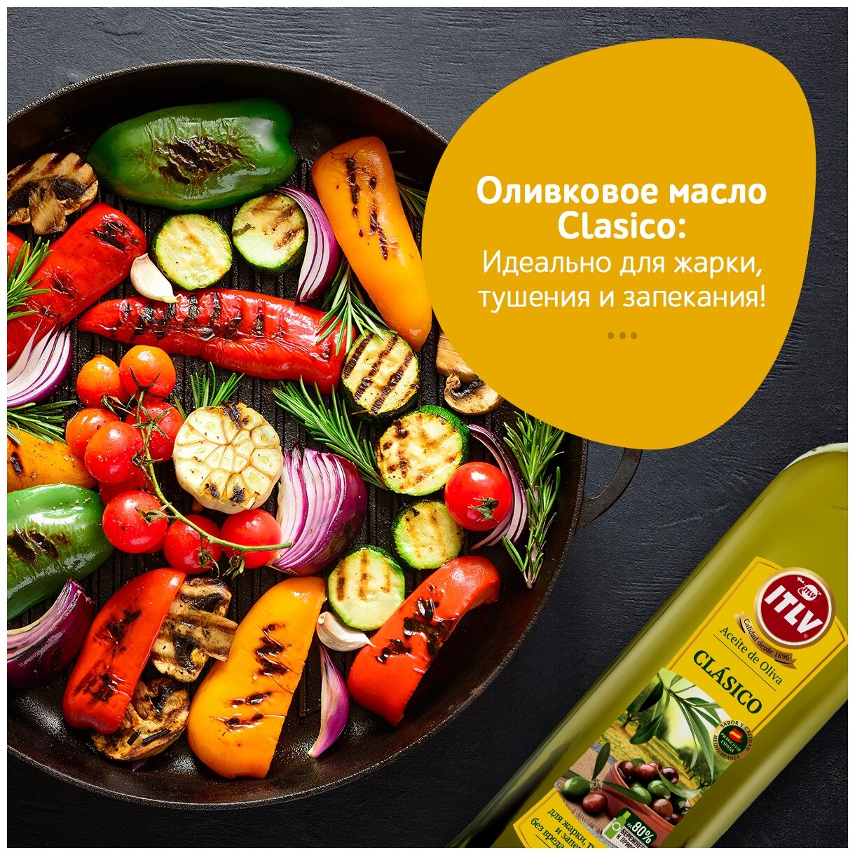 Масло оливковое ITLV Clasico - получено из отборных оливок лучших испанских сортов, прошедших специальную обработку в соответствии с многолетними традициями и современными стандартами качества. Обладает менее интенсивным, мягким вкусом и ароматом. Можно использовать несколько раз. Широкий спектр применения как для жарки, тушения, запекания, так и других блюд, где не нужно ярко выраженного вкуса Extra Virgen