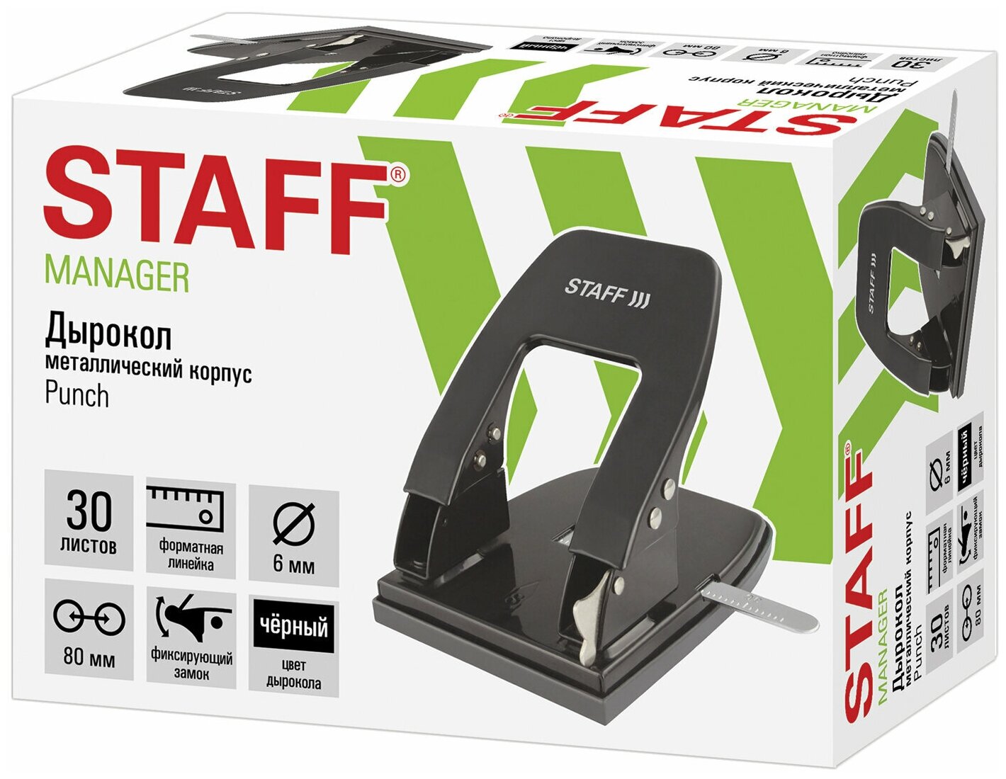 Способен пробить за один раз 65 листов бумаги. Стандартное количество пробиваемых отверстий — 2, диаметр каждого — 6 мм. Благодаря расстоянию между отверстиями в 8 см проколотые дыроколом листы могут храниться в папке идеально ровно и не мяться. Когда будет завершен отчетный период, они обычно сшиваются ниткой и снимаются с металлических колец.