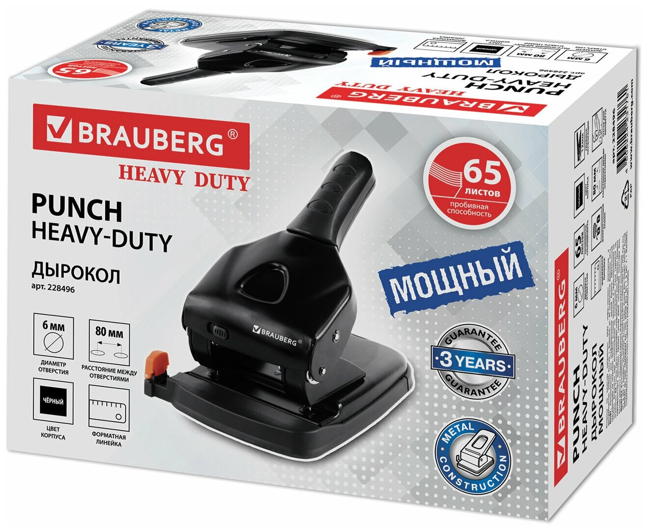 Мощный металлический дырокол BRAUBERG Дырокол Heavy duty до 65 листов
