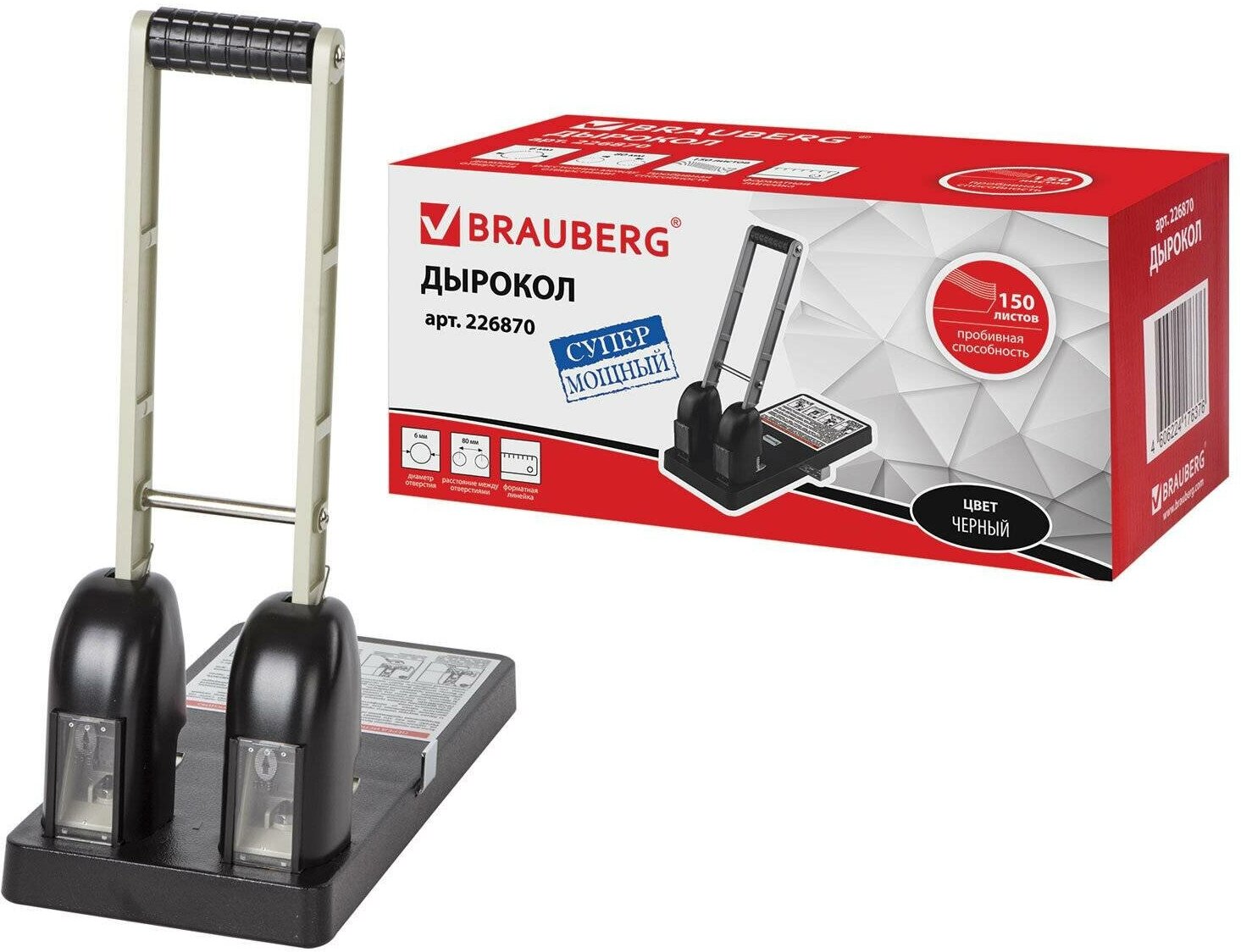 Мощный металлический дырокол BRAUBERG Дырокол Heavy duty до 150 листов