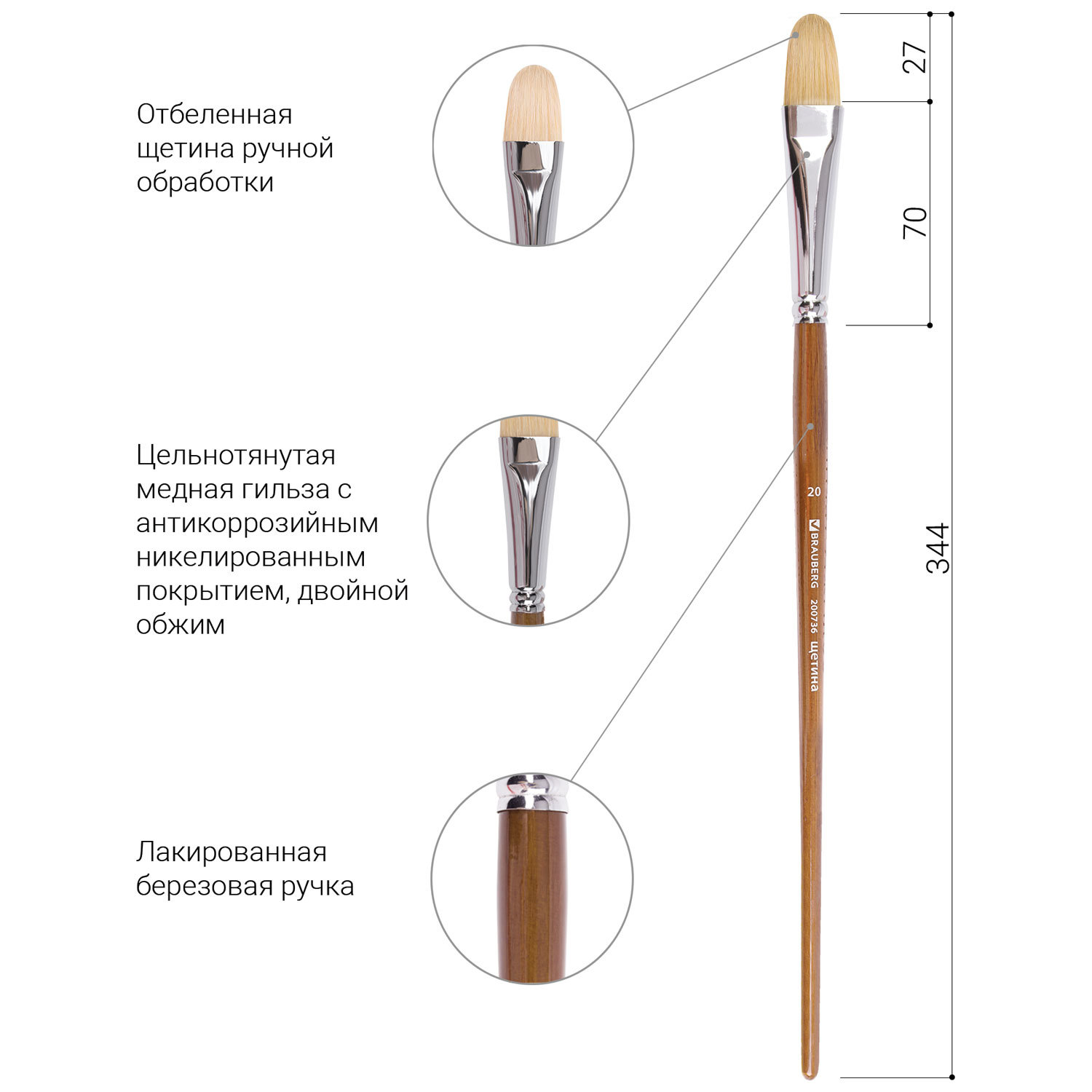 Кисть художественная профессиональная BRAUBERG ART CLASSIC щетина овальная № 30 Кисть художественная профессиональная Art Classic щетина овальная №30